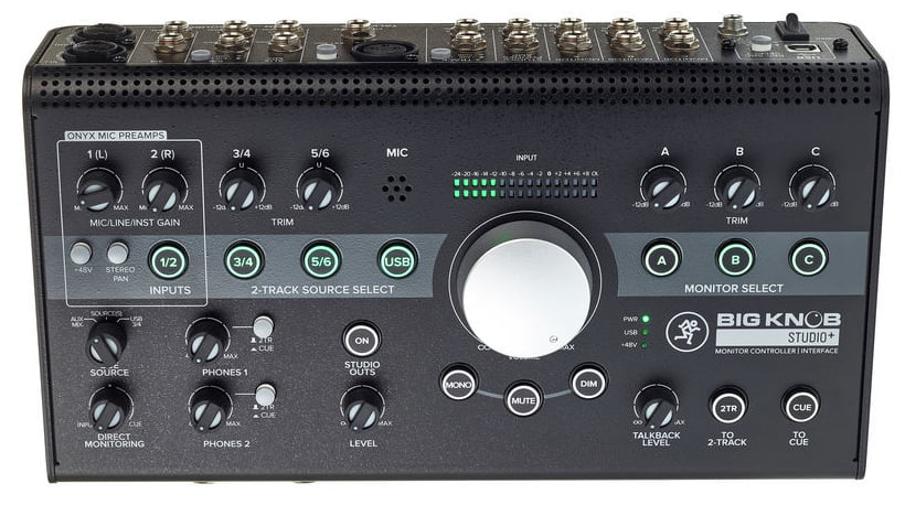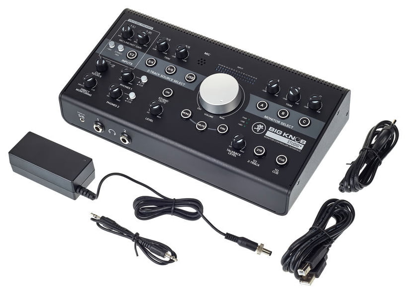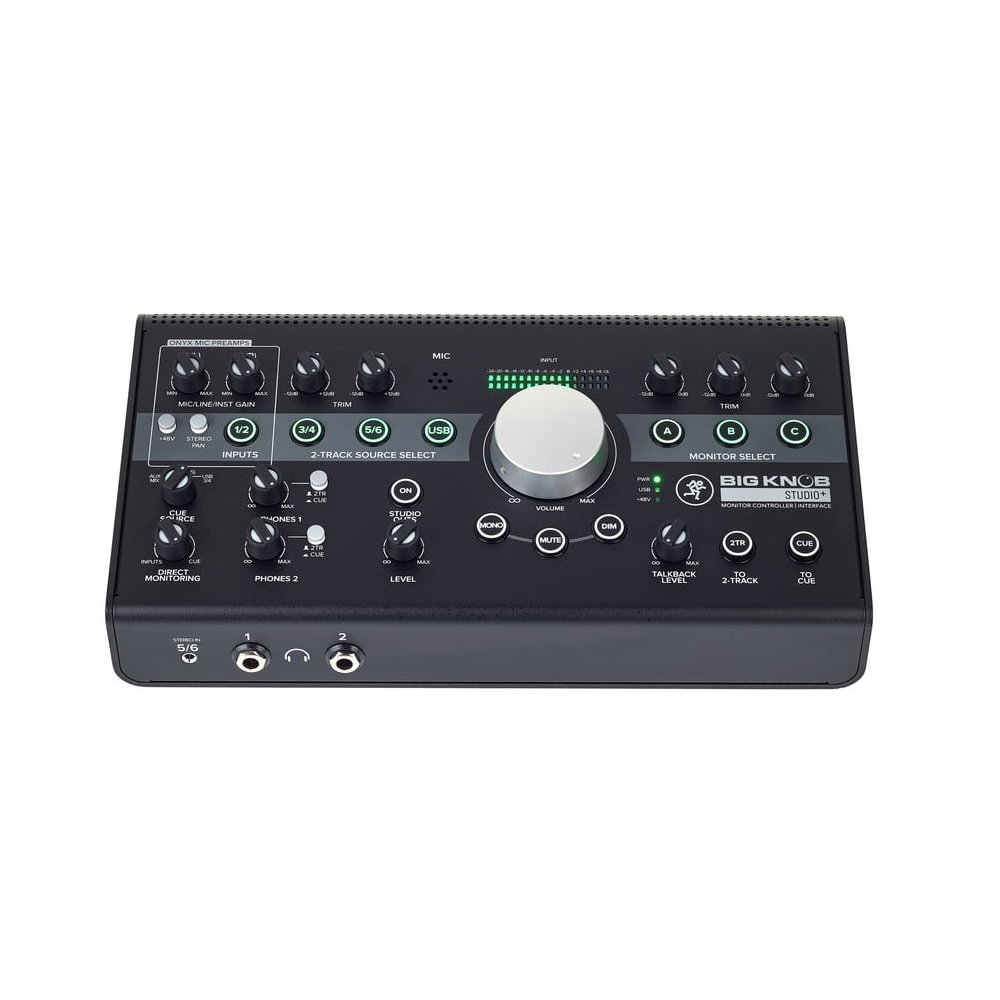 The Mackie Big Knob Studio+ is a professional active monitor controller that can also function as a USB audio interface. It is designed for large studios and can handle the most complex monitoring and routing tasks that sound engineers may encounter. This model is the flagship of the Big Knob series and offers the maximum number of inputs and outputs.