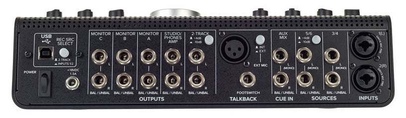 - Inputs: 2 x TRS / XLR, 4 x TRS, 1 x XLR talkback mic in, 1 TRS footswitch