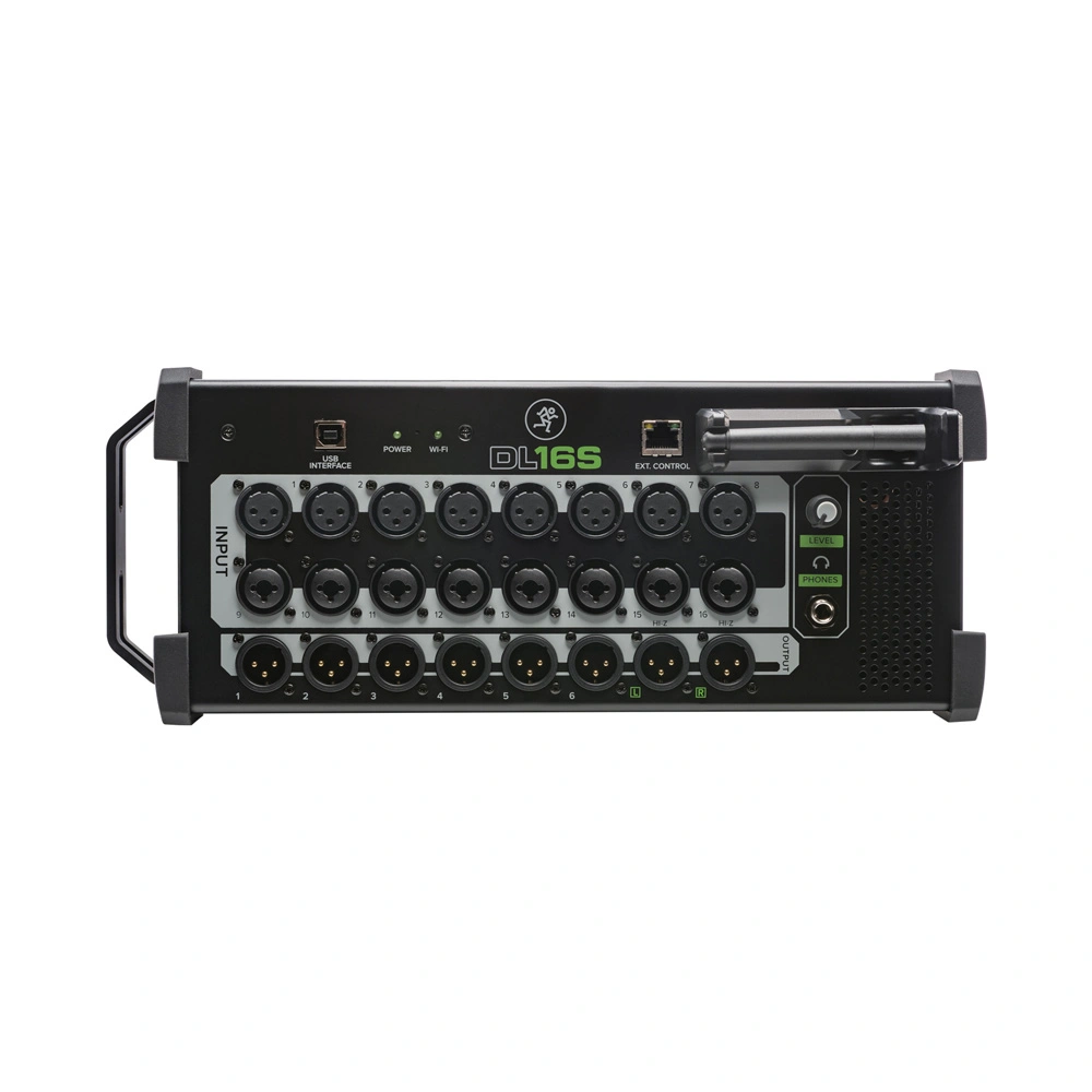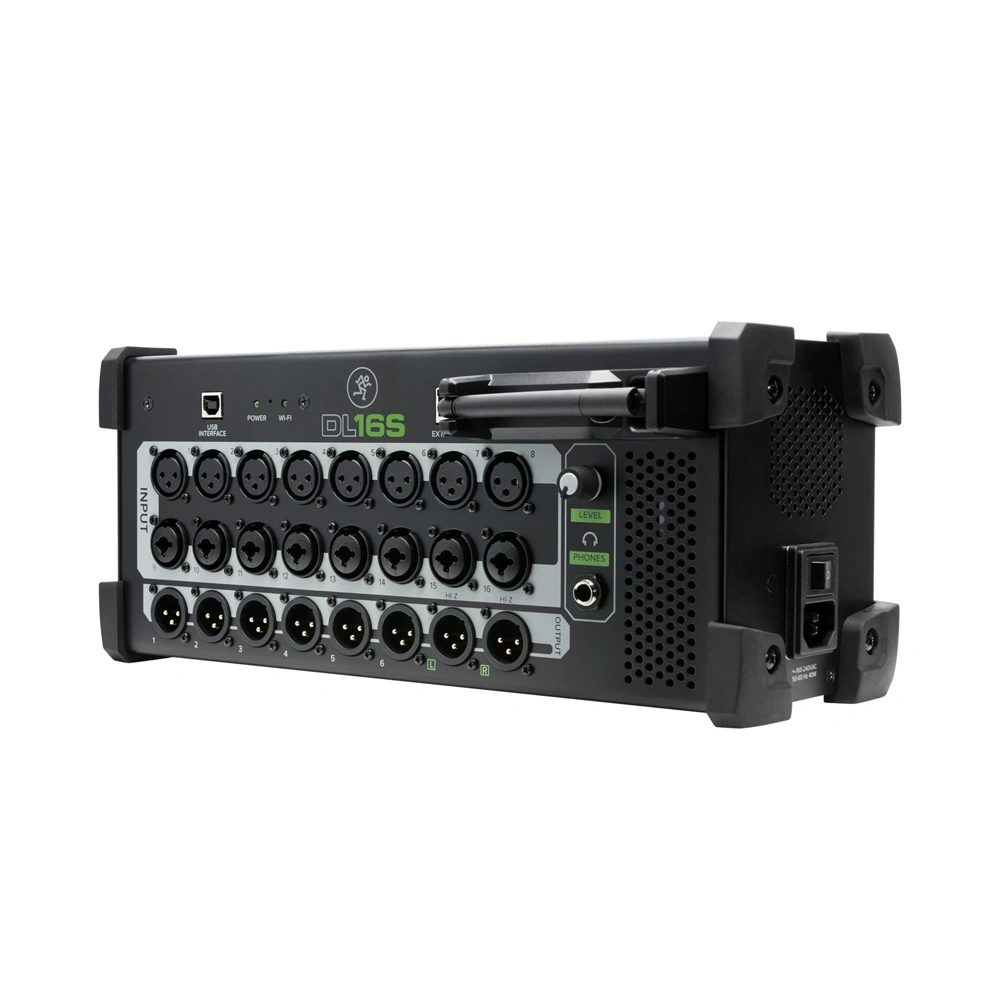 The Mackie DL16S is a highly versatile mixer that can be equally useful in live and studio environments. Full remote control, a wide range of DSP effects, flexible grouping and routing options make this device very convenient for professional sound engineers. Its 3U rack-mountable form factor allows for easy installation in a rack. Additionally, it can be placed directly on a table or mounted on its side if space is limited, with rubber protective corners acting as legs.