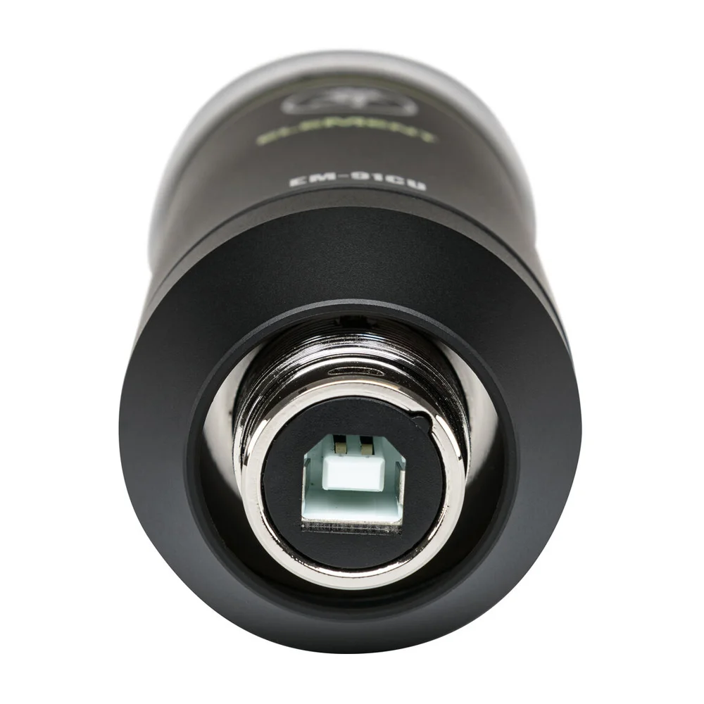 The microphone features an electret condenser capsule with a cardioid polar pattern and minimal peripheral noise levels. Its frequency response ranges from 20 to 18,000 Hz, with a sensitivity of -30 dB +/- 3 dB, and an output impedance of 150 Ohms +/- 30%. The EM-91C can withstand sound pressures of up to 134 dB. It is housed in a sturdy "Built-like-a-tank" casing, guaranteeing reliable operation for many years. It uses a USB connector for connection. The package includes a spider mount and a USB cable.