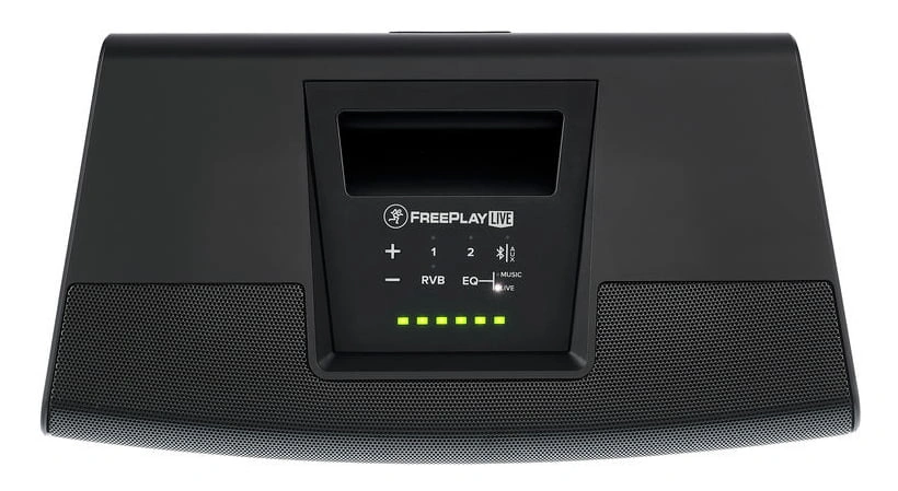 The Mackie FreePlay LIVE is an excellent acoustic system for outdoor concerts and performances in small venues, cafes, and clubs. Convenient control, long battery life, decent power, and high-quality sound make this model attractive to musicians. It also offers the ability to mount the acoustic system on any microphone stand using the included adapter.