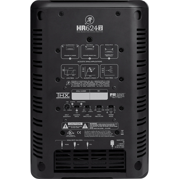 The rear panel of the cabinet has XLR, TRS, and RCA input connectors for compatibility with virtually any audio gear you can throw at it. Controls for LF and HF filters, along with acoustic space matching allow you to customize the monitor to your specific workspace for optimum performance.