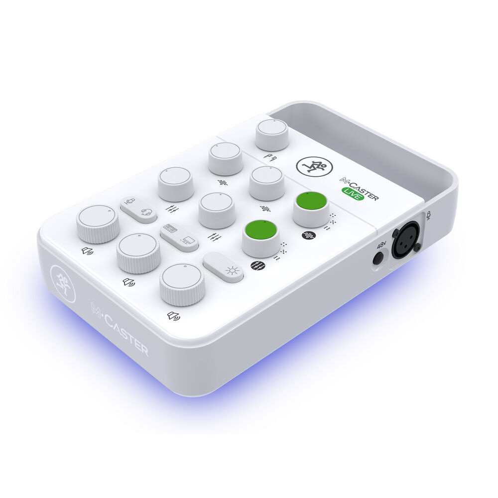 Podcasters and content creators looking for an easy to use audio solution for their solo live stream on their mobile devices will be thrilled with the white Mackie MCaster Live, a streaming mixer that connects through your smartphone's headphone jack to both send and receive audio, as well as take phone calls with mix minus.