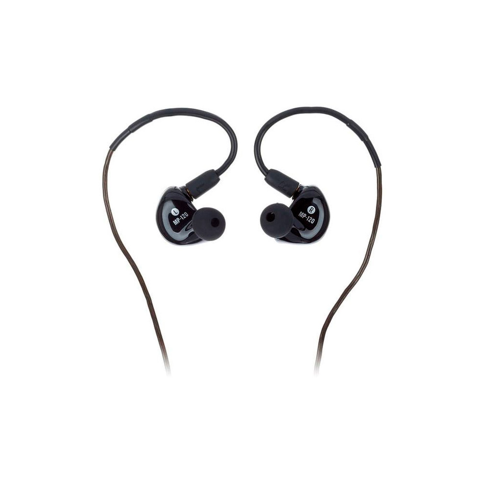 The Mackie MP-120 is a professional in-ear monitor, the entry-level model in the MP series. It features a high-quality single dynamic driver that delivers a high density of low frequencies while maintaining clear highs and mids. The headphones have a low-profile design with molded transparent housings for a comfortable fit, even during extended use.