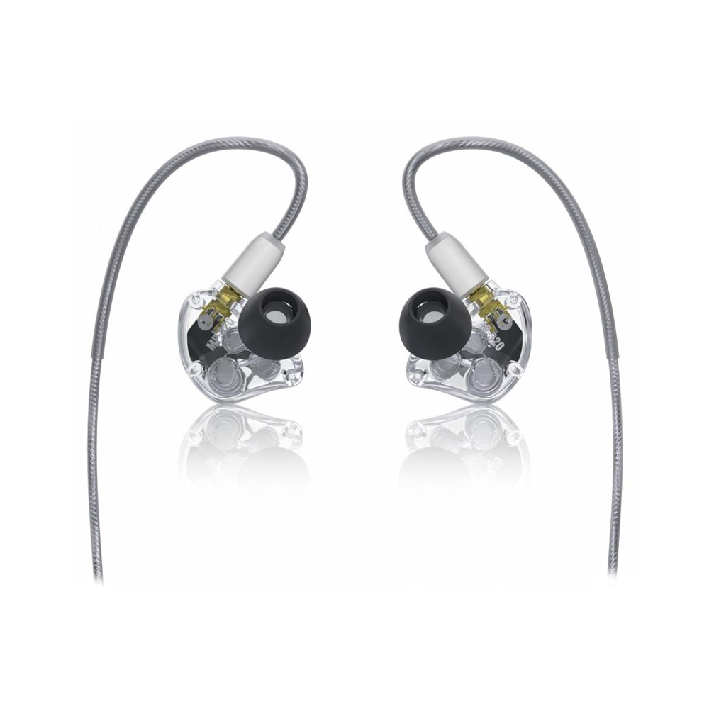Professional in-ear monitors Mackie MP-320 are designed to provide improved sound insulation and full-range frequency reproduction for musicians, vocalists, and sound engineers in studio recording sessions or live performances. The headphones have a low-profile design with molded transparent housings for ergonomic fit, making them comfortable to wear even for extended periods of time.