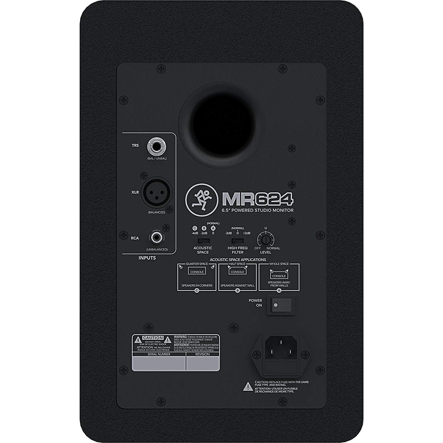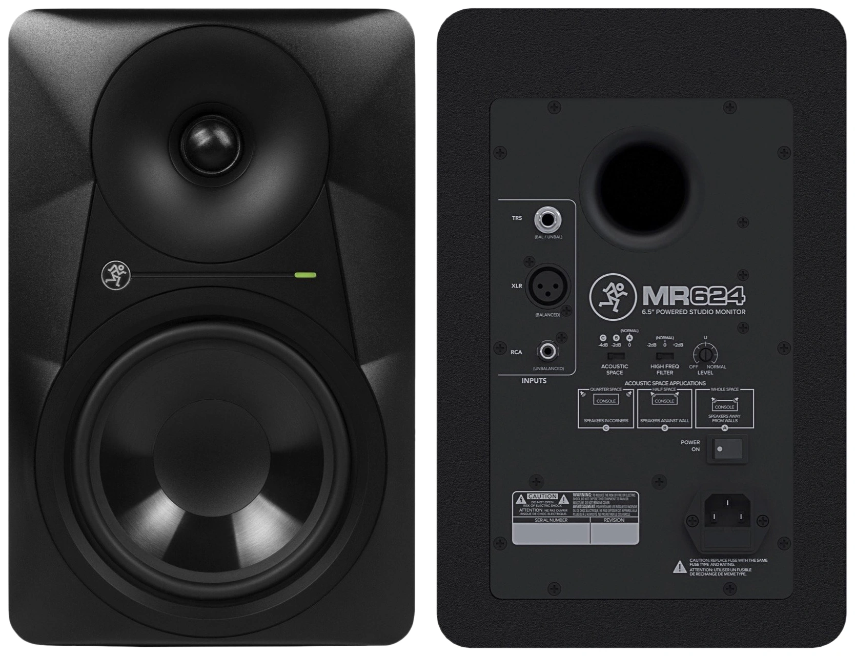 The Mackie MR624 is an active near-field studio monitor, belonging to the fourth generation of the MR series of professional acoustic systems and is the middle model in this line. The monitor is designed for working with audio material, mixing and mastering music compositions, film soundtracks, and games. It is also suitable for monitoring during recording, allowing for a linear amplitude-frequency response, absence of audible distortion even at maximum volume, and a wide frequency range.