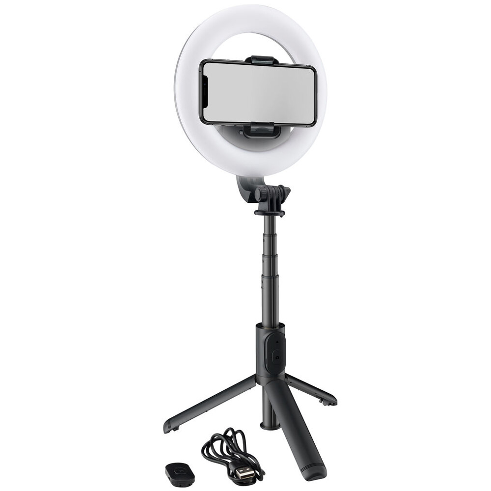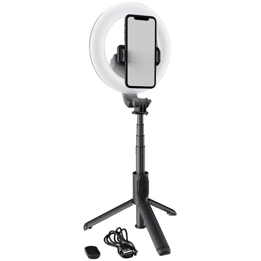 The versatile LED Ring Light Kit from Mackie includes a 6" diameter ring light made for content creators who use mobile devices for recording work remotely, streaming, vlogging, making online tutorials, and more. The included telescoping selfie stick / light stand and adjustable smartphone holder allow you to start shooting right out of the box. Also included is a wireless Bluetooth remote that is compatible with both iOS and Android devices, so you can start and stop your videos without having to touch your phone.