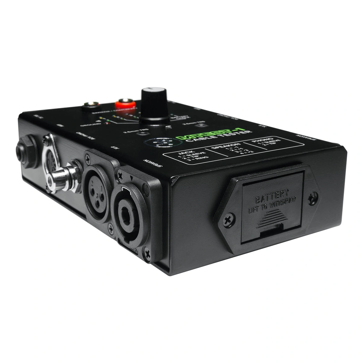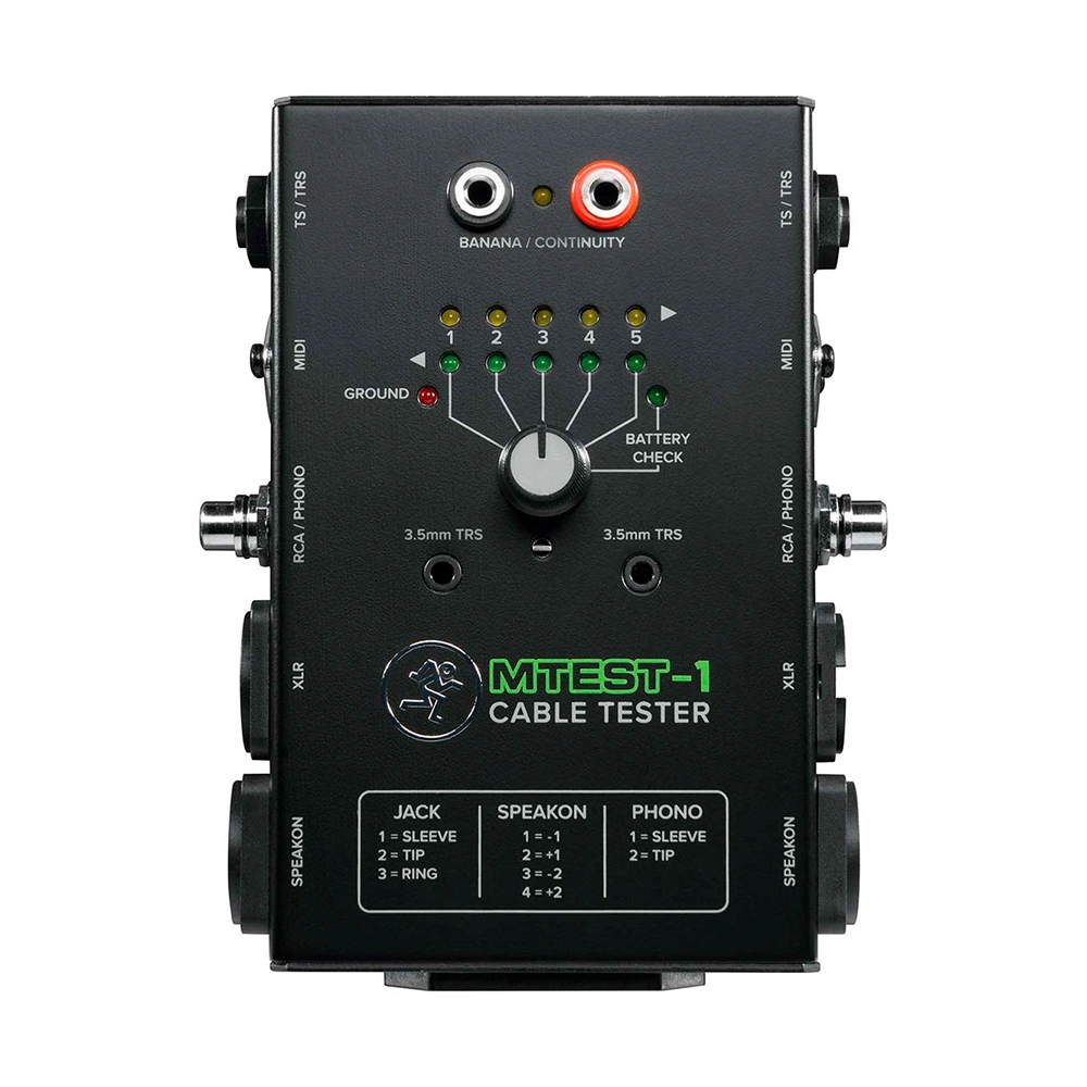 The Mackie MTest-1 cable tester is designed to test cables for faults and supports a wide range of connections. Differs in versatility due to the presence of a wide range of connectors. It is possible to test bare wires and check battery charge using a six-position switch. Mackie MTest-1 notifies you about the condition of ground loops by transmitting a light signal through an LED indicator. The device is suitable for transportation - the case material is highly durable. Power is supplied from an AA battery (9 W).