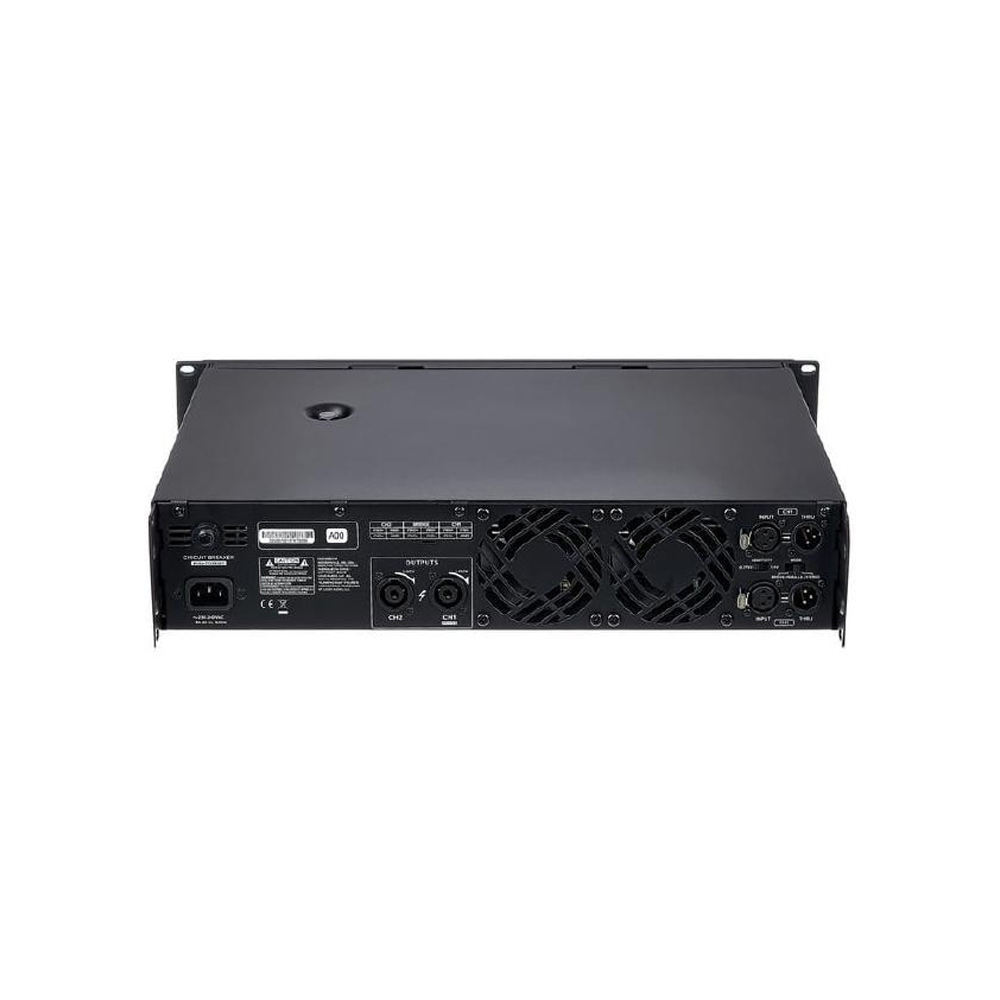 There are two balanced XLR inputs available for connecting a sound source. The same connectors are also used for the through outputs, which are used to send the signal to a second amplifier or other device. Balanced outputs for speaker connection are provided in the form of two Neutrik speakON connectors. The device's functionality includes input limiters, protection against overheating, and a ventilation system. The device is housed in a sturdy all-metal 2U standard chassis, making it easy to install in a rack module. It is powered from the mains.