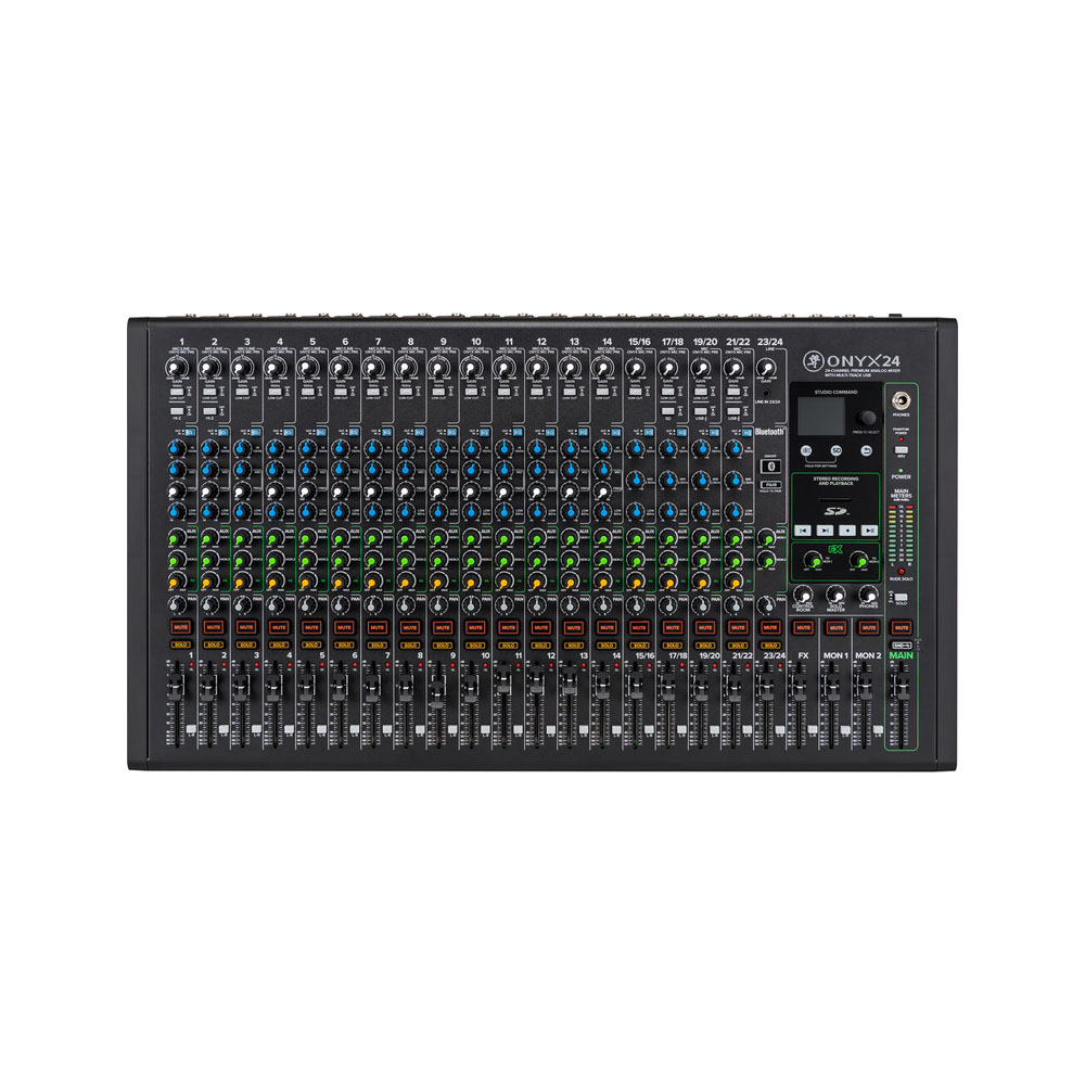 Mackie Onyx24 is a 24-channel analog mixer with per-channel recording, effects processor, and USB.