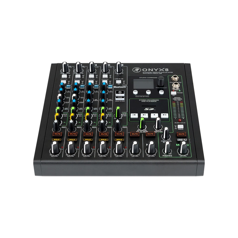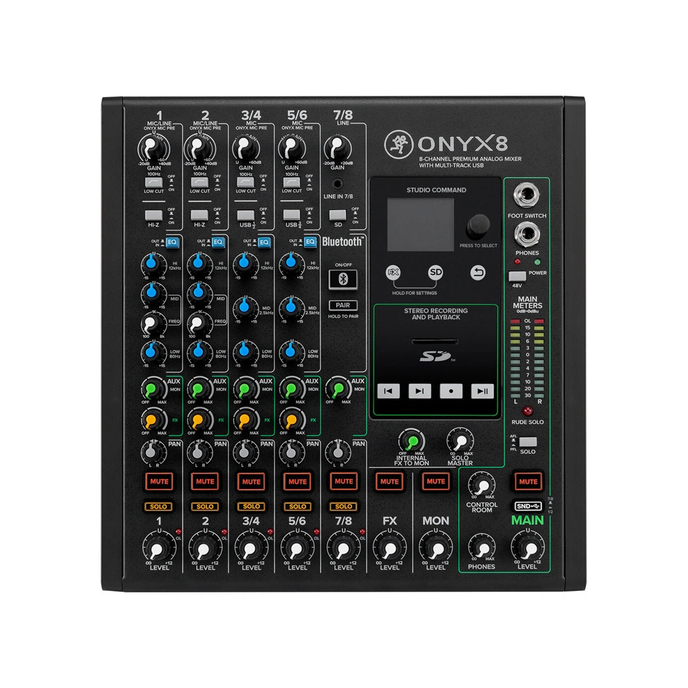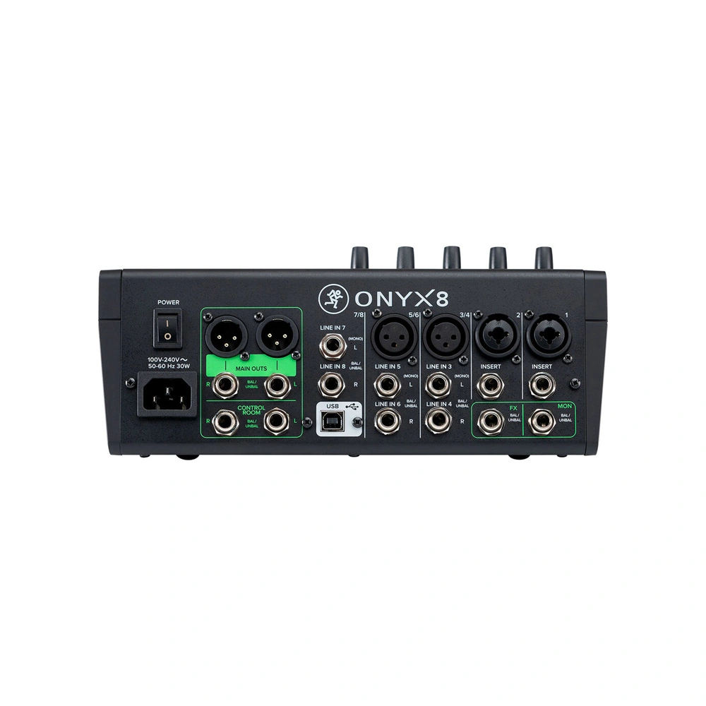 Mackie Onyx8 is the entry-level model in the Onyx series of mixers. It is an 8-channel analog mixer with per-channel recording, effects processor, and USB connectivity.
