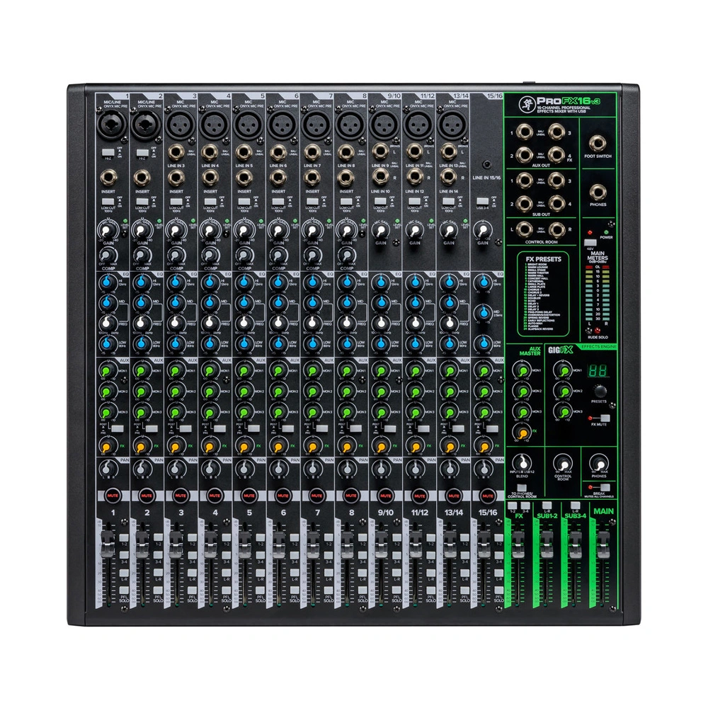 The Mackie ProFX16v3 is an analog mixing console equipped with a USB audio interface and a DSP effects processor. This device belongs to the third generation of the ProFX series of professional mixers and is the middle model in the series, featuring 16 input channels, which include 8 mono and 4 stereo channels. The mixer is ideal for use in theaters, cultural centers, schools and universities, rehearsal spaces, and recording studios.