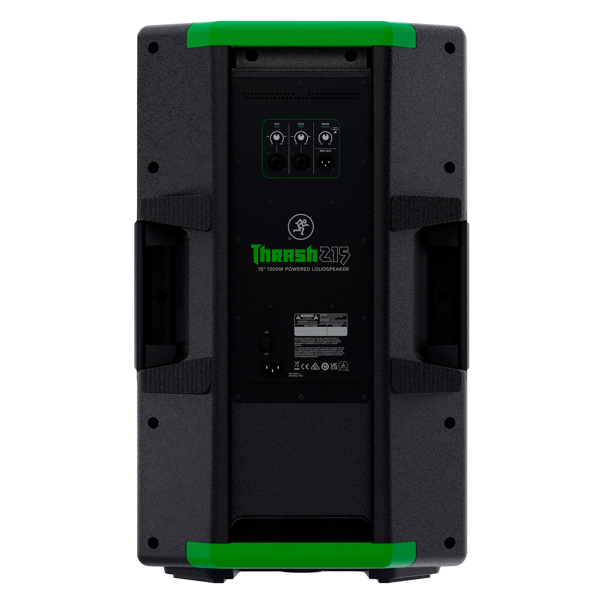 The Mackie Thrash215 is an active 2-way acoustic system that can be used as a front speaker or monitor. It features a built-in class D amplifier with a power output of 1300 watts. The powerful low-frequency driver with a diameter of 381 mm and the compression high-frequency driver with a 25 mm titanium diaphragm provide a wide frequency range of 38 Hz to 20 kHz (-10 dB).