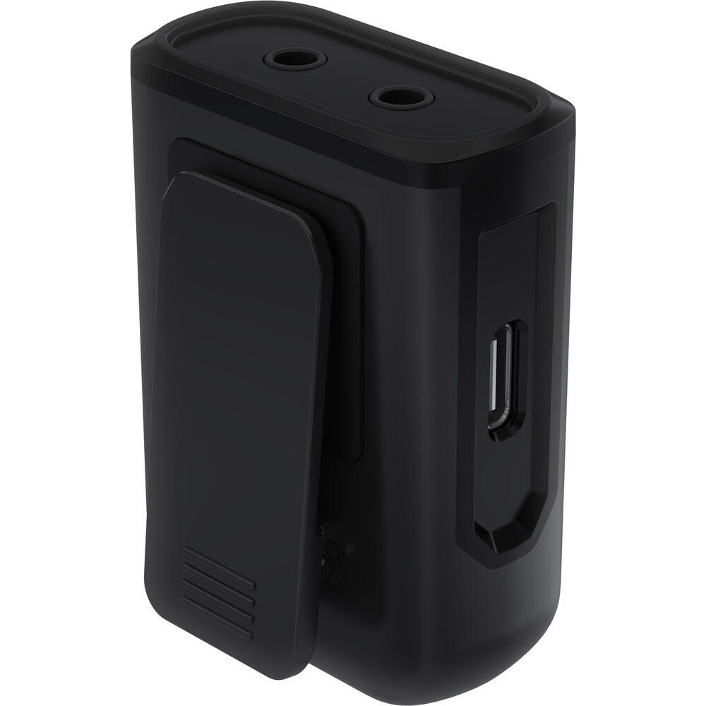 The ultracompact receiver measures only 1.1 x 1.5 x 2". The receiver features a belt clip, which also doubles as a shoemount adapter for your camera. In the absence of a smartphone holder, the receiver can also be clamped to your smartphone using the belt clip. Headphone jack for real-time monitoring. Dedicated gain buttons on the receiver allow quick and effortless adjustment of the signal level.