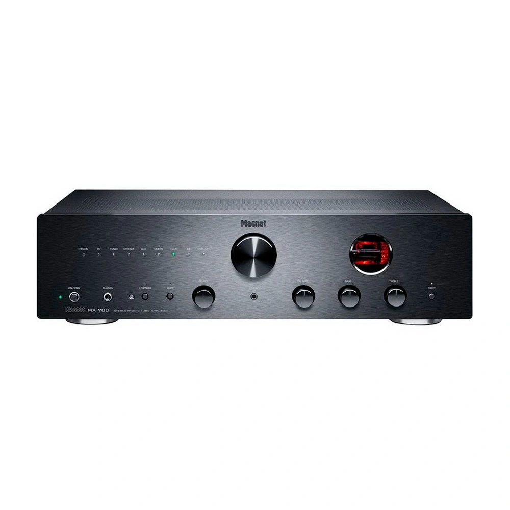 The Magnat MA 700 is an integrated amplifier equipped with a dual triode ECC 81 tube. Operating in class AB, this amplifier can deliver 70W/channel with a 4 ohm impedance. However, in addition to this, the MA 700 provides all the necessary tools to play all your diverse media files. Along with various analog and digital inputs, as well as Bluetooth, there is also an HDMI input, making this amplifier a true all-rounder.