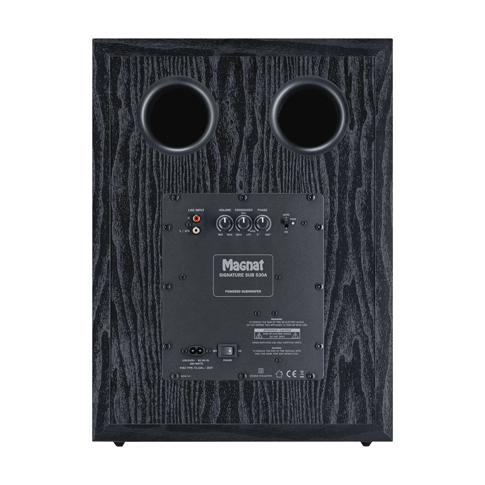 The Magnat Signature Sub 530A features a 280-watt amplifier with an intelligent control system that limits the membrane oscillation amplitude to prevent distortion. The crossover allows for adjustment from 50 to 200 Hz, with the signal phase inverted by a 0/180-degree switch. It has both linear and LFE input connectors. The subwoofer is equipped with an automatic power-on system when a signal is detected at the input, making it easy to use in modern settings. The Magnat Signature Sub 530A subwoofer is capable of providing audio coverage for significant room areas without any risk of overload.