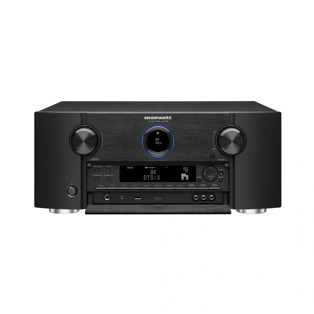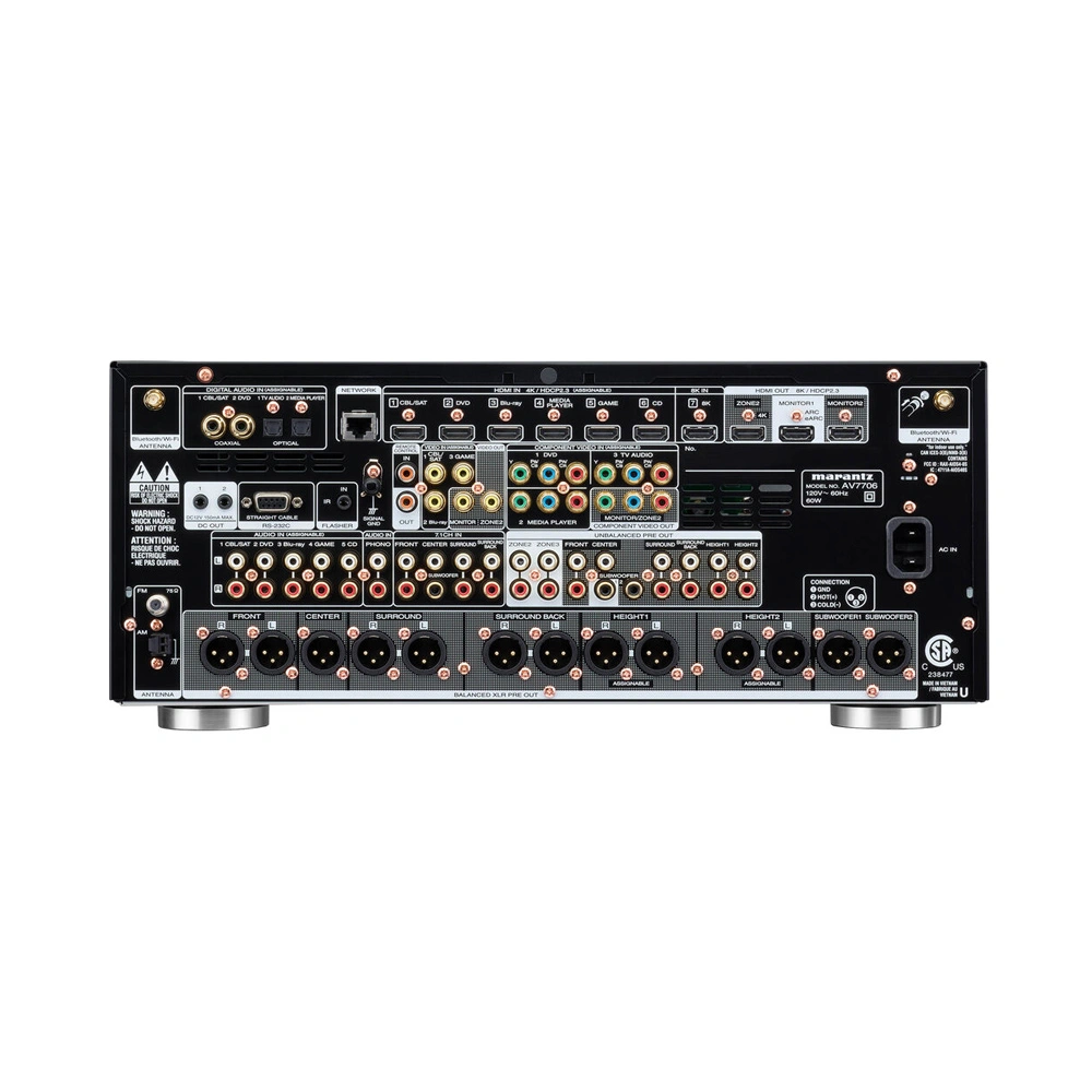 The new Marantz AV7706, meticulously tuned by world-renowned acoustic experts at state-of-the-art facilities, leverages years of Hi-Fi experience to deliver exceptional audiophile-quality immersive sound for all your entertainment needs. Experience the ultimate 11.2-channel preamplifier system with the new Marantz AV7706 processor/preamp. The AV7706 features 11.2-channel XLR and RCA outputs, along with a high-quality external power amplifier for the most demanding active speakers. Enjoy the audiophile sound you expect from Marantz, combined with the latest video and audio decoding technologies, as well as voice control through your favorite voice assistants.