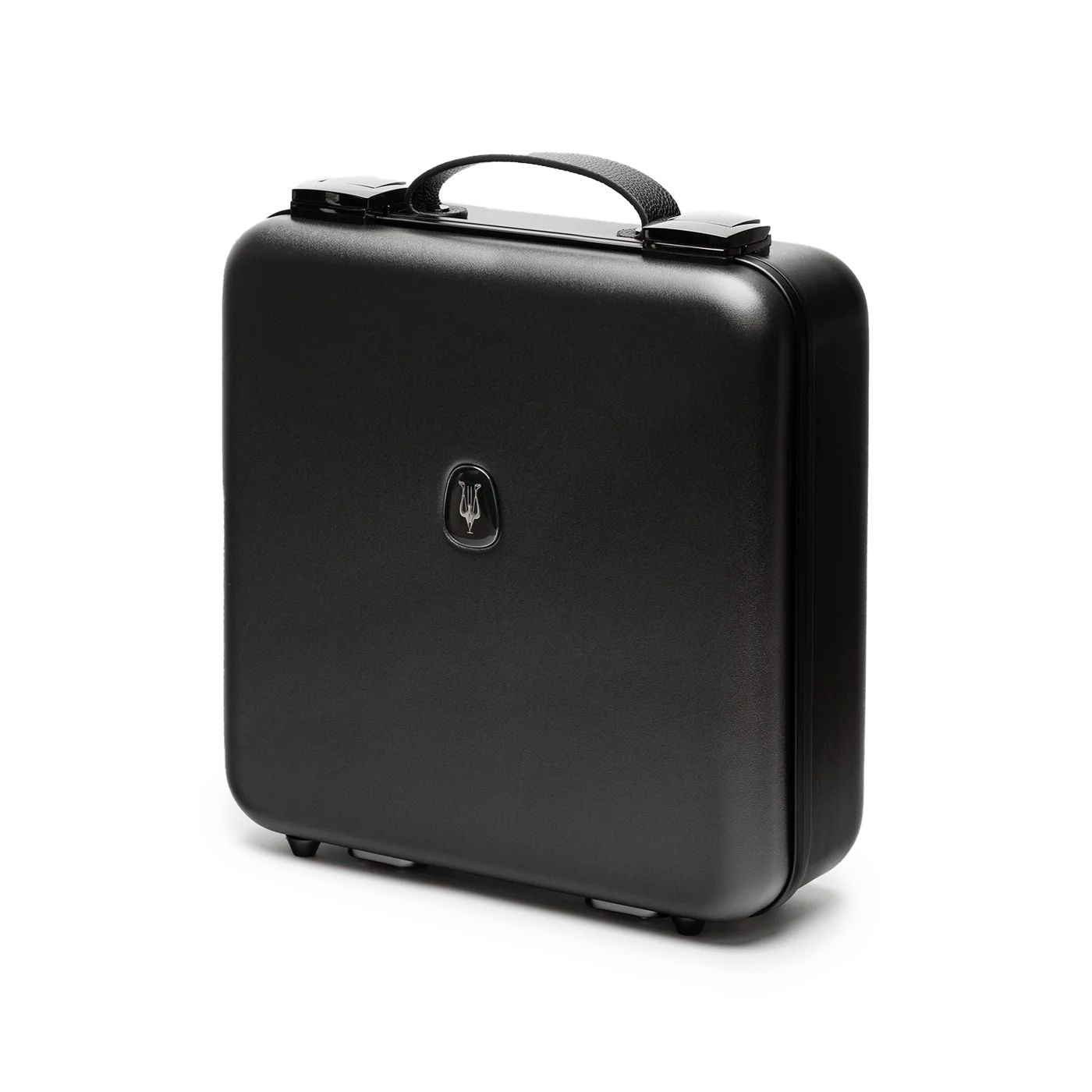 The Meze Audio suitcase is a standard suitcase made of high-strength ABS plastic with foam inserts and a leather handle, featuring a metallic Meze Audio logo. This suitcase is perfect for safely storing or transporting your headphones.