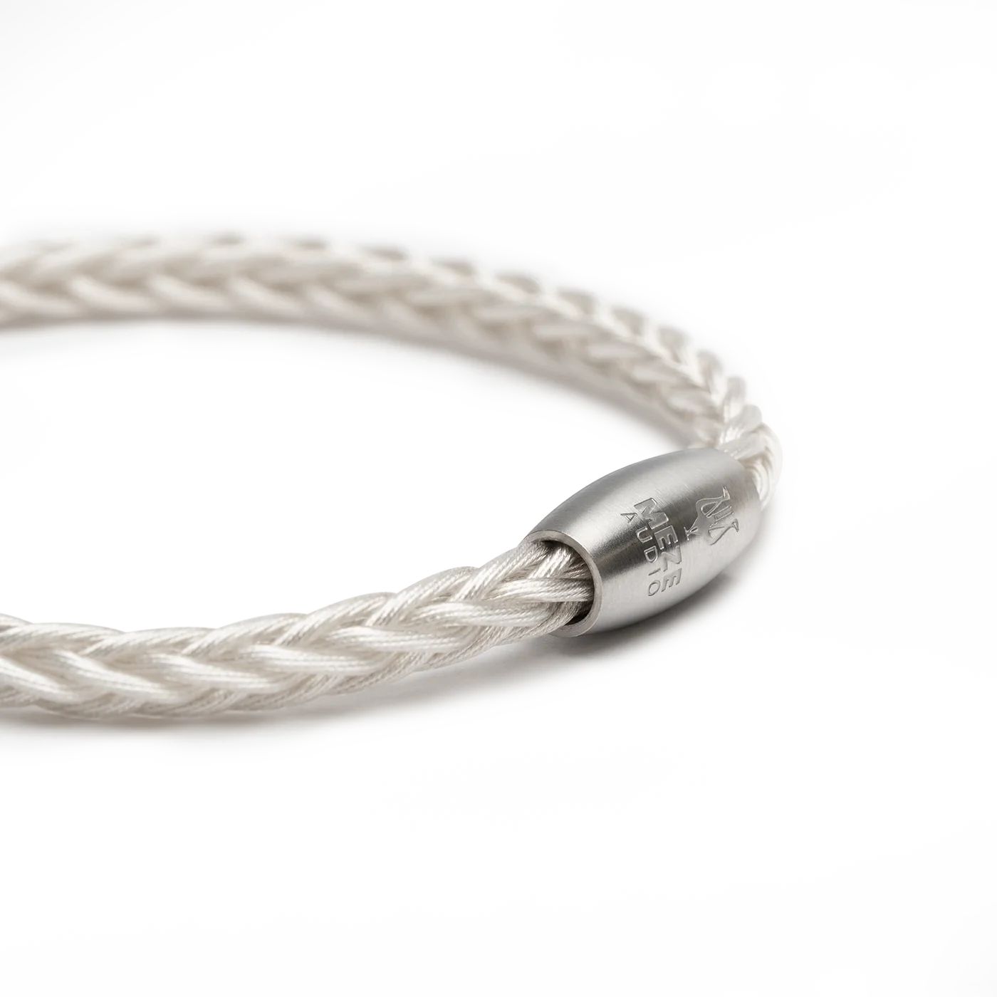 Braided Furukawa PCUHD silver plated bracelet with logo-engraved magnetic clasp. A simple, yet timeless accessory fit for all audio lovers.