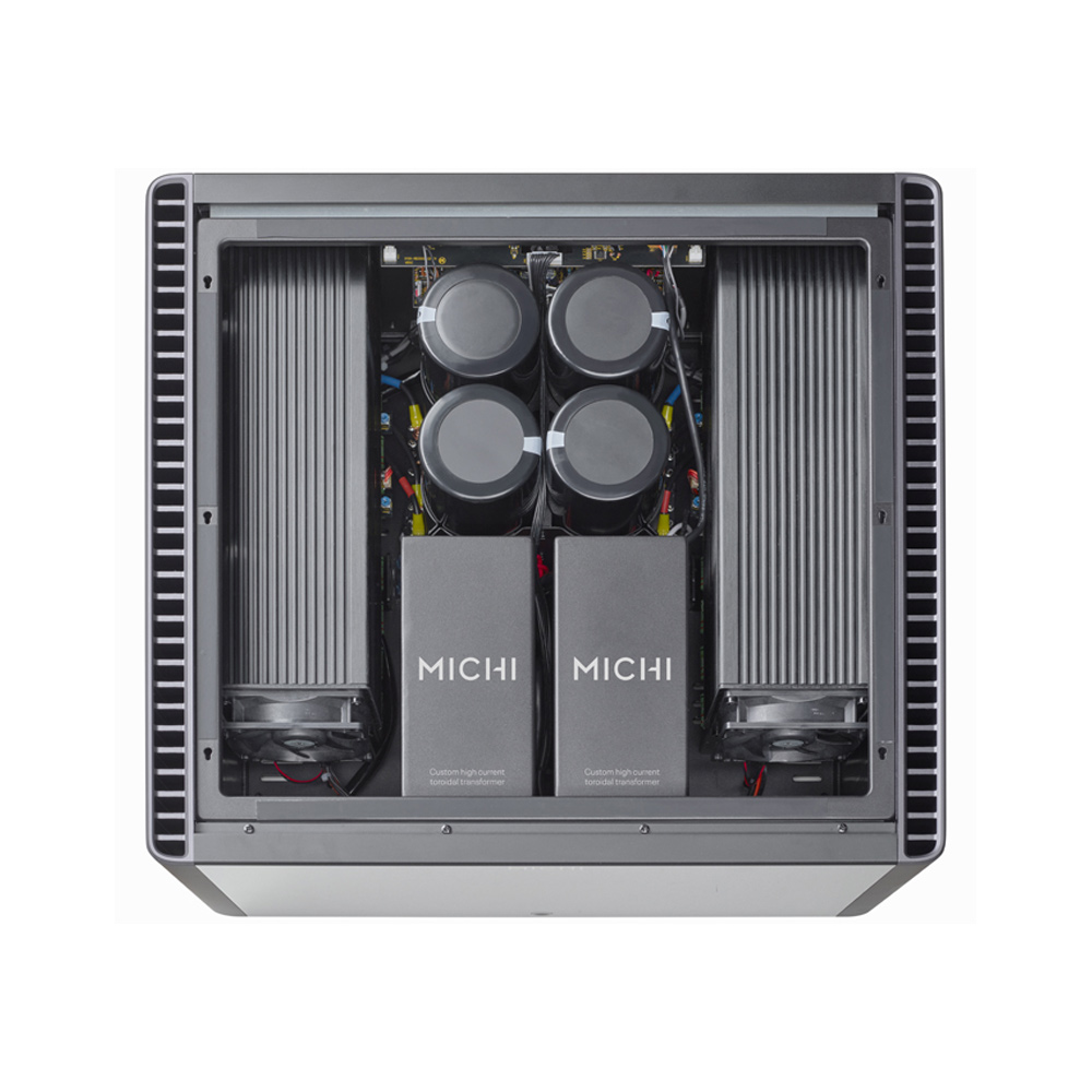 The Michi M8 Monoblock Power Amplifier is an uncompromising Class AB component, delivering 1080W at 8 ohms and astounding 1800W at 4 ohms. Its design and architecture ensure smooth, accurate, and relaxed sound reproduction even when working with the most demanding speaker systems, while maintaining critical characteristics such as energy, rhythm, and synchronism.