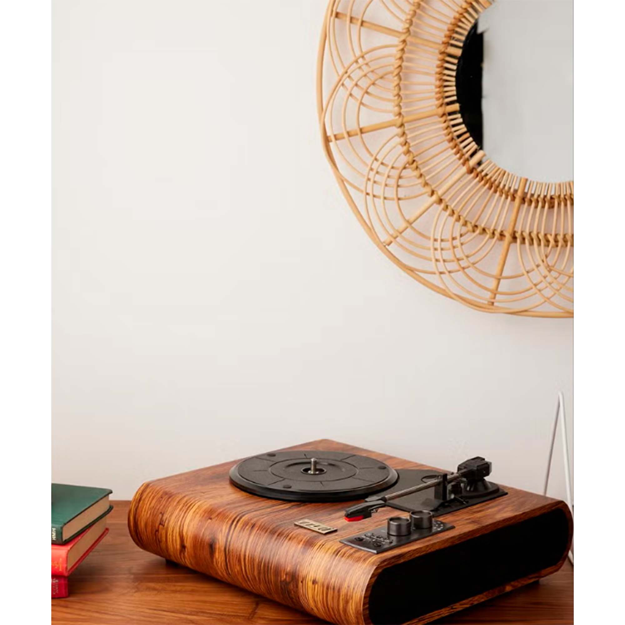 MJI 1689 M2012 Turntable complements your room without dominating it, picking up wooden accents and creating beautiful sounds. It works beautifully in home studies or dens and comes with both built in speakers and a headphone jack, allowing you to zone in or zone out as the occasion demands. Play vinyl, radio or connect it via Bluetooth and enjoy the good life. This product will be an excellent pick for you. A perfect decor for all music enthusiasts, it will add a striking focal point in any room.