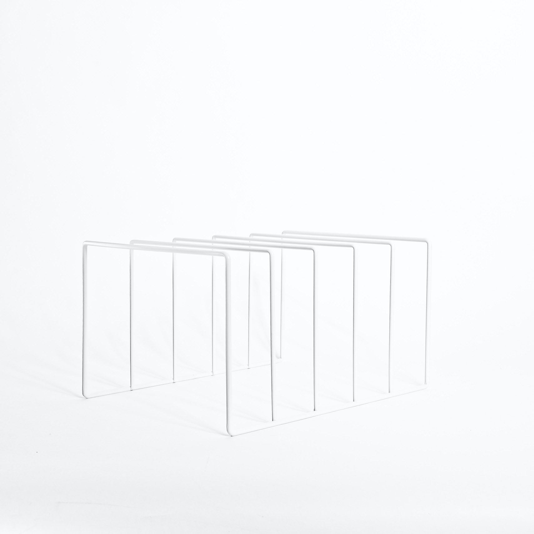 It features a metal casing, painted with aerosol paint, which embodies functional minimalism and seamlessly fits into any interior. The holder will keep your albums in excellent condition.