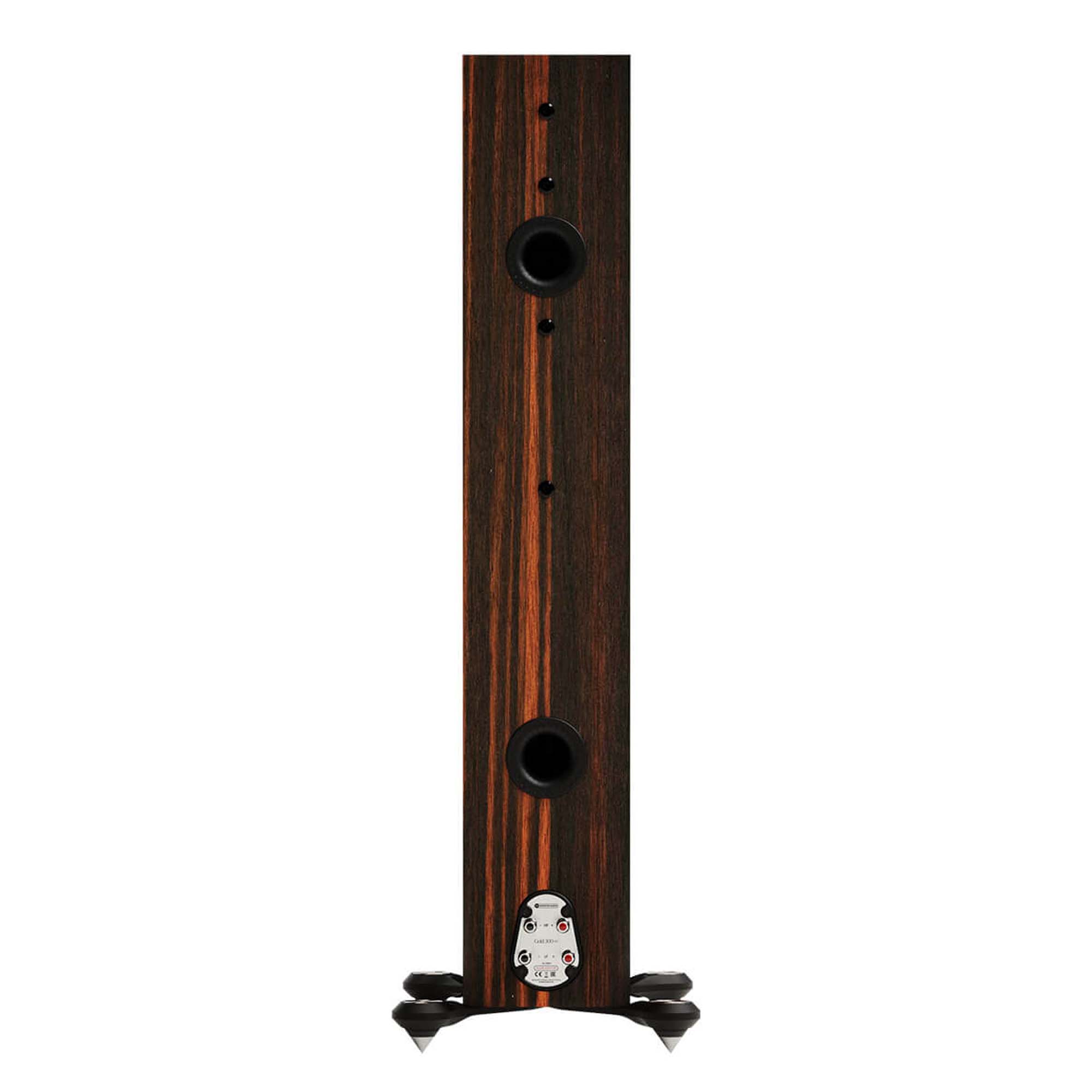The luxurious, soft-touch finish of the Monitor Audio Gold 300 cabinets exudes a premium-class look and feel. The one-bolt-through design technology enhances the mounting strength, rigidity, and driver/baffle disconnection. Custom-made magnetic grilles offer a clean visual style that is practically acoustically transparent. High-quality gold-plated bi-wire terminals are custom-made. Durable cast metal outrigger feet with spikes or rubber feet for carpet or hard floor surfaces provide a more attractive appearance and take up less floor space.