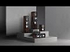 Made of complex-profile MDF panels forming a curved, reinforced rigid enclosure with a thickness of 18-21mm and internal walls of 36mm thickness. The top panel is adorned with an engraved inlay and finished with 16 layers of lacquer.