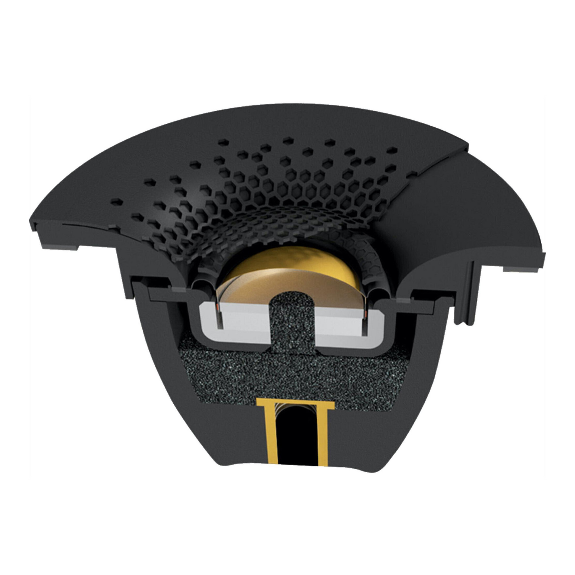 - C-CAM gold dome tweeter made of aluminum-magnesium alloy and ceramic;