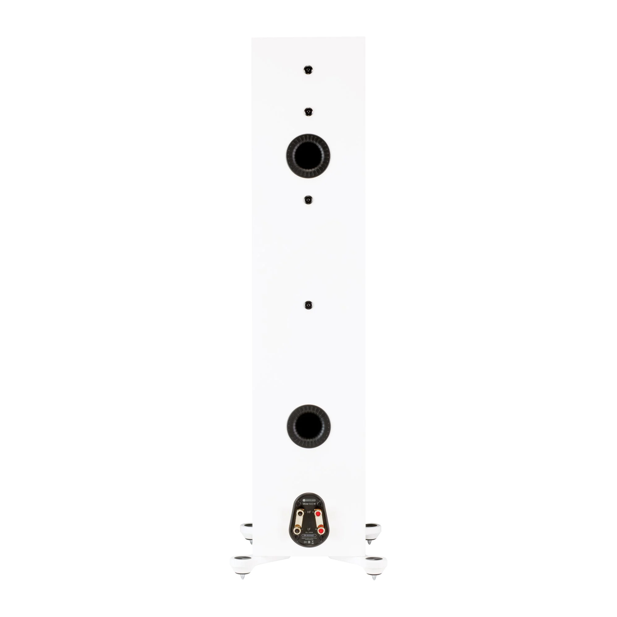 The speaker cabinets are constructed from thick MDF panels reinforced with internal bracing. The Monitor Audio Silver 500 7G speakers feature the signature HiVe II port technology, known for minimal acoustic noise and high efficiency. Both port openings are located on the rear panel, which should be taken into consideration when placing the speakers in a room. The Monitor Audio Silver 500 7G speakers are equipped with an updated crossover network that has been further optimized to reduce phase distortion.