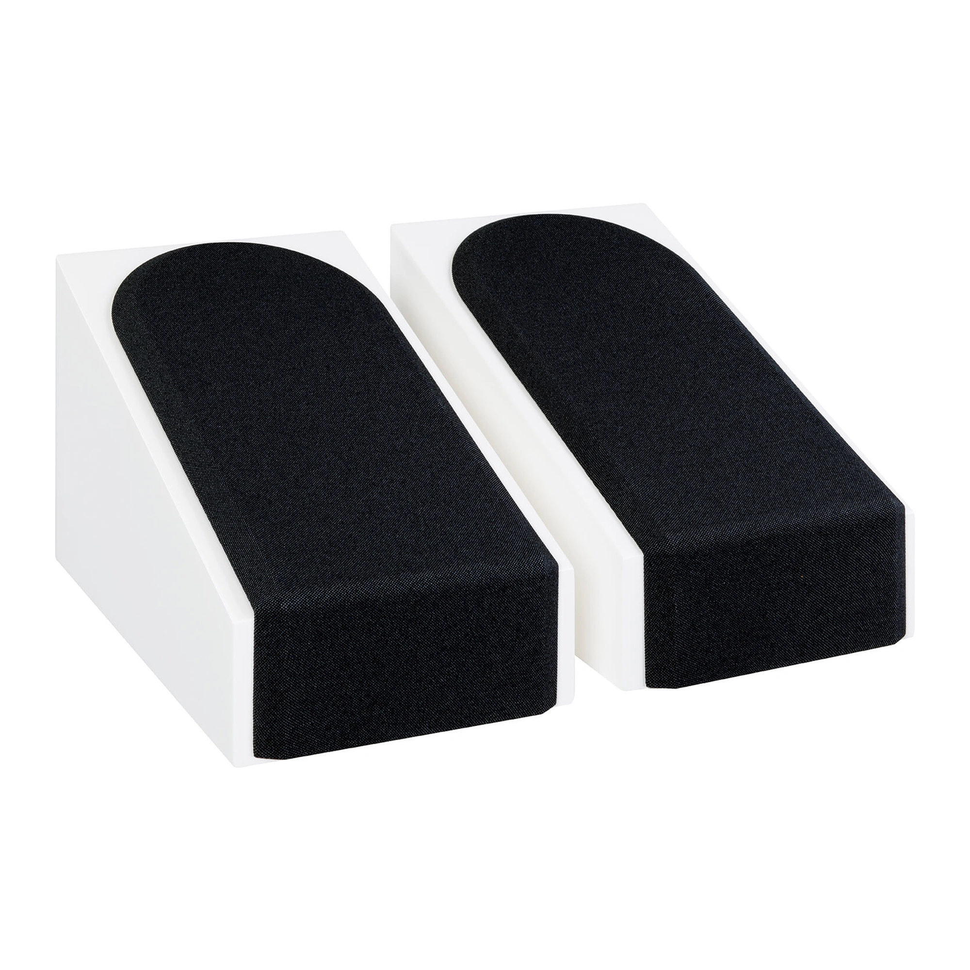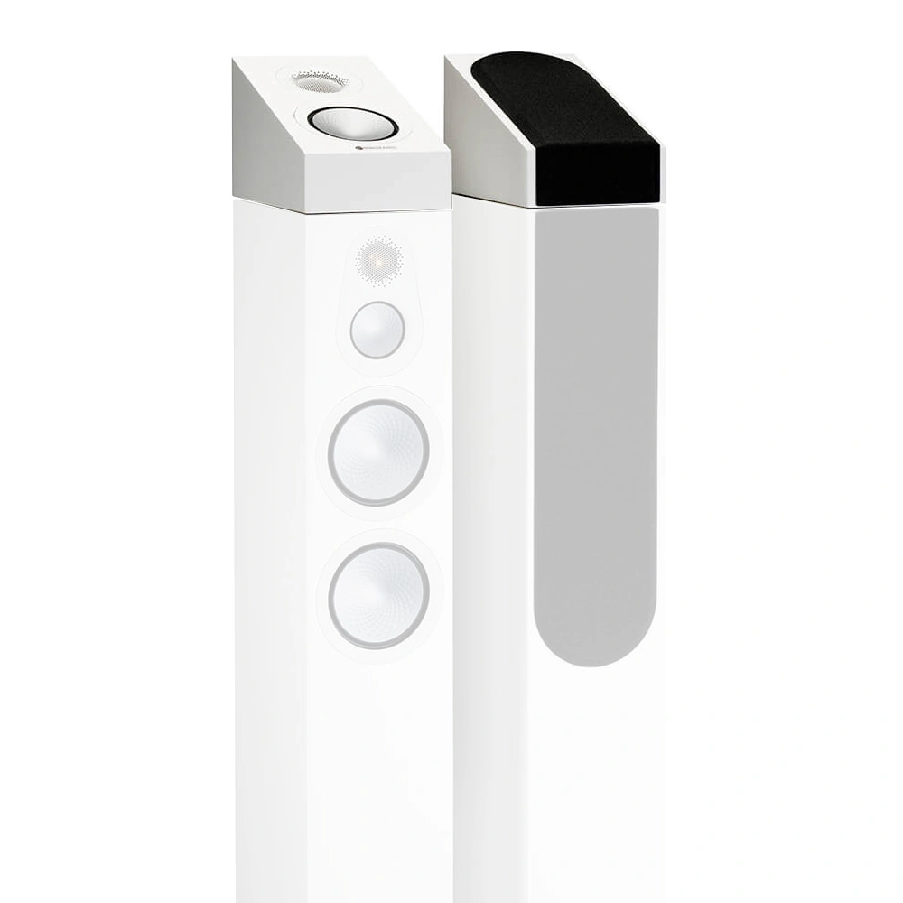 The Monitor Audio Silver AMS 7G speakers are designed to provide sound for height channels in Dolby Atmos surround sound systems. The speakers are designed to reflect sound from the ceiling of the listening room, creating the illusion for listeners that the sound source is located above their heads. In order to achieve this effect, the speakers are equipped with drivers placed on the top panel at a specific angle. These speakers can be placed on floor-standing speakers, for example from the same series, creating a seamless look. Additionally, the Monitor Audio Silver AMS 7G speakers can also be wall mounted if the front speakers in the home theater system are smaller in size.
