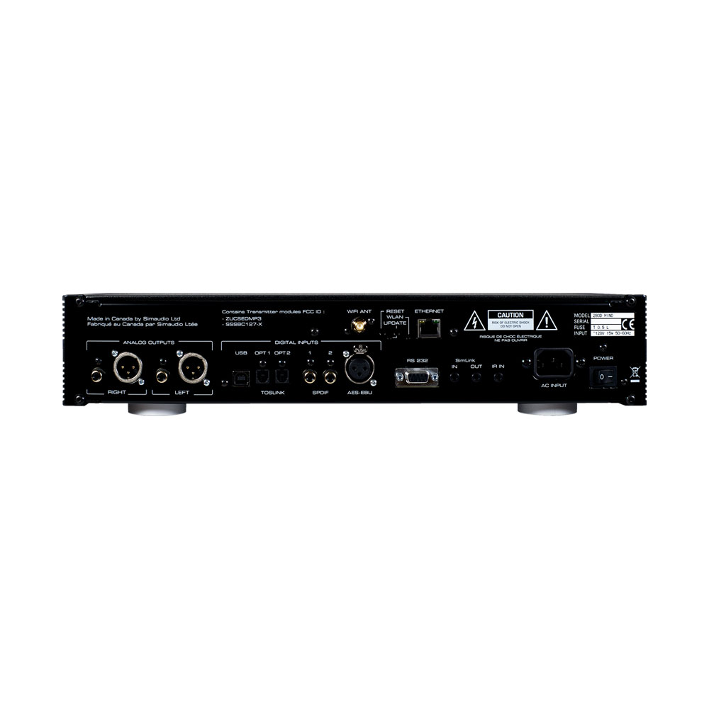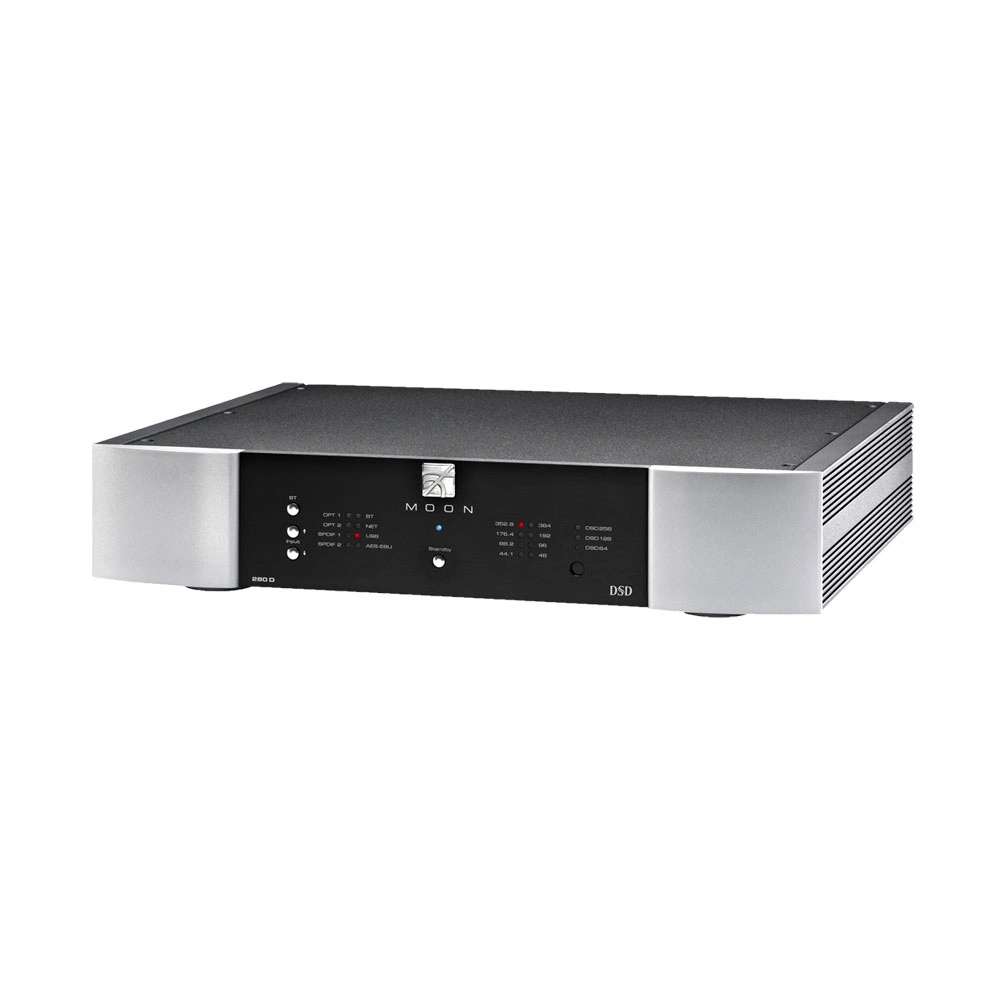 The Moon by Simaudio 280D MiND 2 is a DAC with traditional coaxial, optical, and balanced inputs, as well as a USB interface that supports PCM up to 32-bit/384kHz and DSD64-256. The device is equipped with a network card developed by MIND 2, which allows you to stream files from UPnP servers using wired and wireless methods.