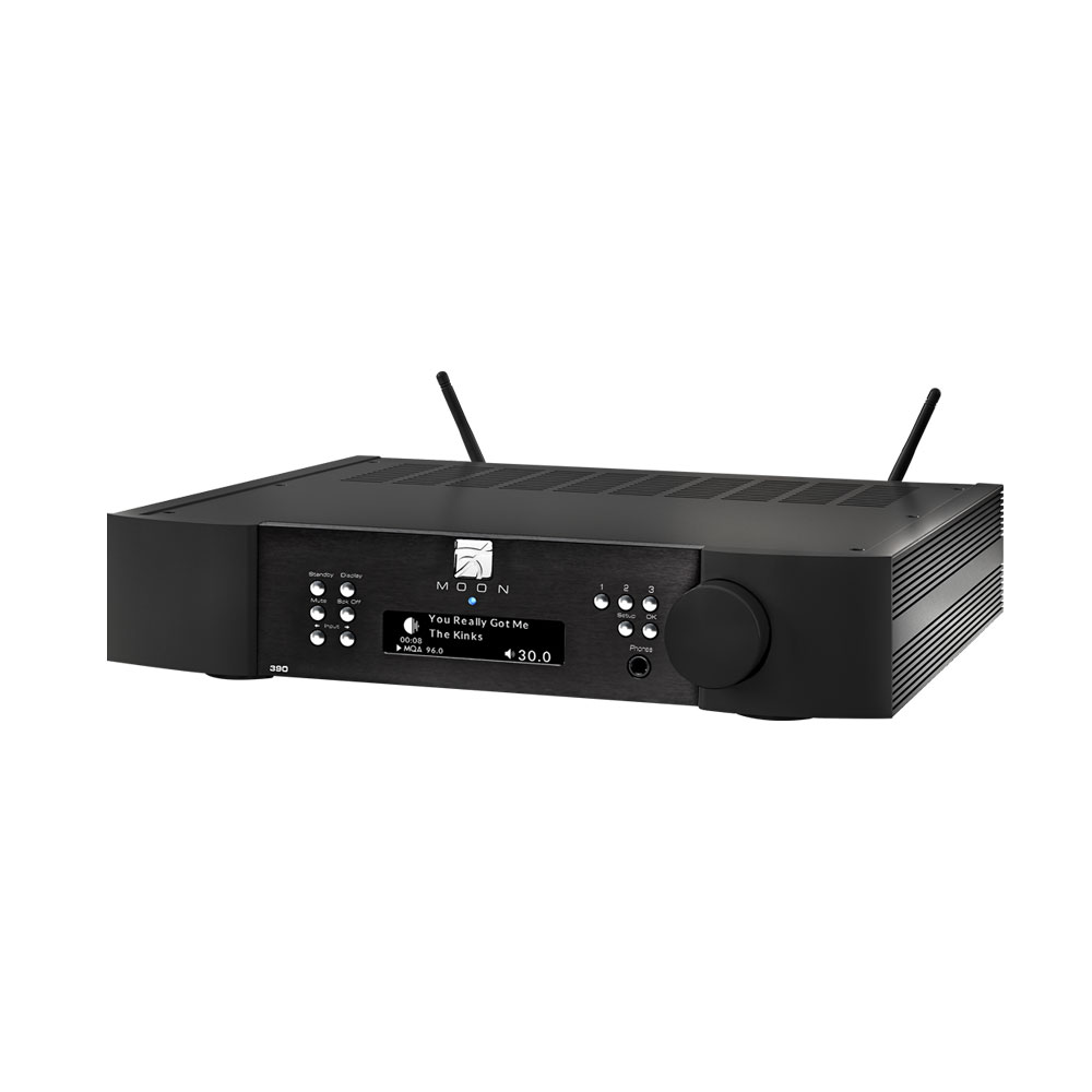 Moon by Simaudio 390 is a network player that houses a DAC, preamplifier, headphone amplifier, phono stage (MM/MC), and streamer. It is based on the 350P preamplifier and the 380D DAC, combining the functionality of these two devices and adding important features such as streaming music from Tidal Masters, Qobuz Sublime+, and Deezer Hi-Fi. The built-in converter supports PCM formats up to 32-bit/384kHz, DSD256, and MQA.