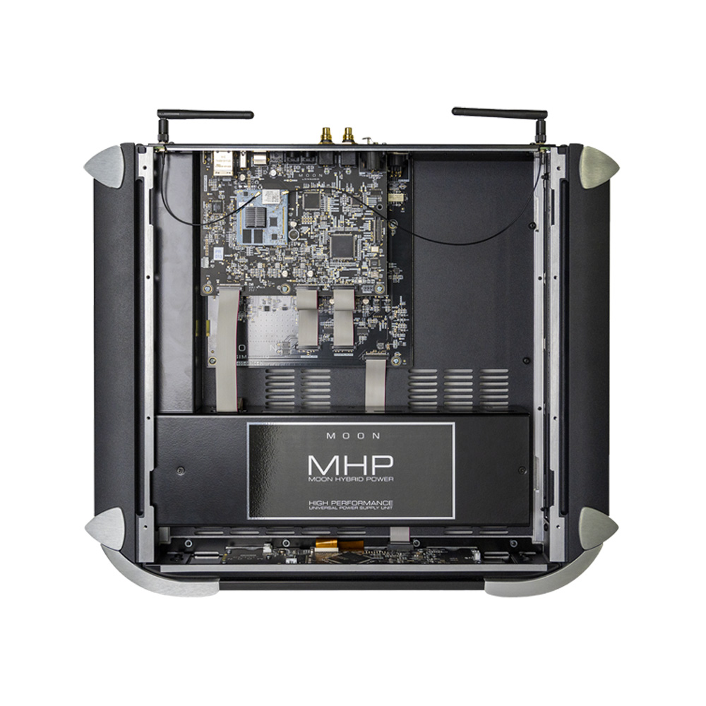 The colorful 4.3'' OLED screen displays song titles and album covers, while the SimLink-enabled BRM-1 remote control makes managing and integrating into the full MOON system a breeze. The MHV (Moon Hybrid Volume) technology combines digital attenuation and analog gain levels for high-performance volume control when the 681 is not connected to a MOON preamplifier, without compromising the audio signal in the digital domain.