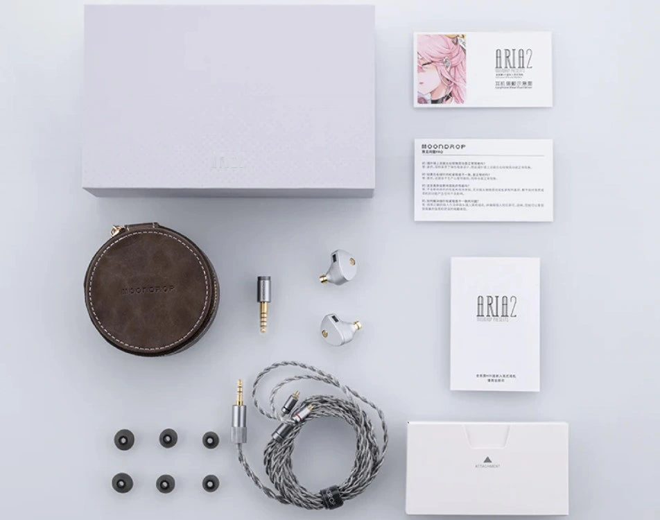 Aria2 features the modern patented MOONDROP dynamic driver design, providing accurate sound representation, a wide acoustic range with low distortion levels, thanks to a special large dynamic long-stroke symmetric magnetic circuit and resonance control system in the acoustic chamber. Aria2 easily achieves outstanding signal reproduction linearity.