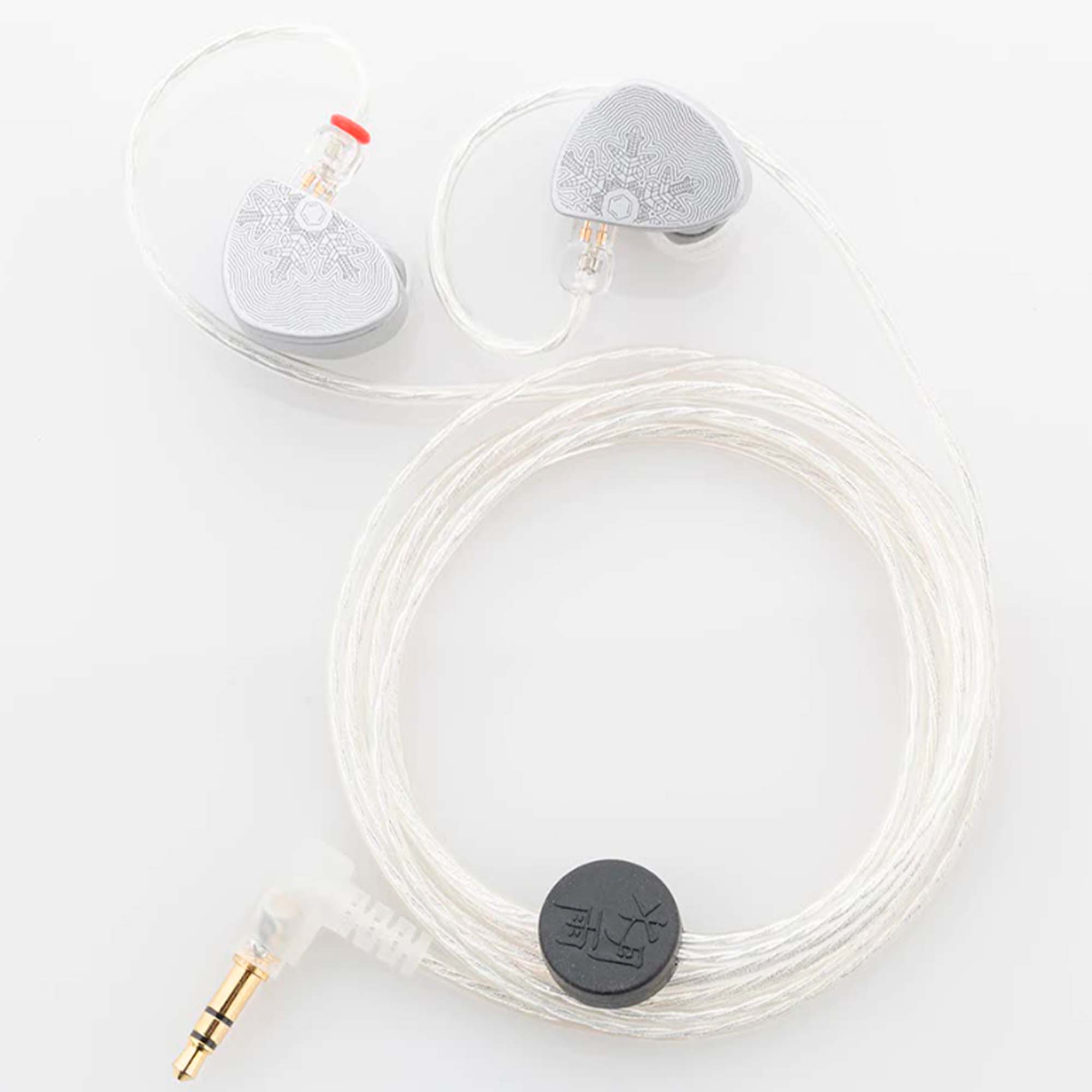 The 10mm high-performance driver with dual internal magnet combined with a first-generation DLC composite diaphragm provides high quality, rich detailing, and crystal-clear timbre. The technology of molding and CNC milling meets ergonomic requirements, utilizing a completely new surface coating that highlights the metal texture with a complex and aesthetic snowflake pattern, perfectly matching the visual theme of pure snow. It utilizes a composite resonator, multiple tuning holes, and various acoustic dampers with different parameters for precise frequency response tuning to ensure extremely pleasant listening. Combining HRTF and Room Response functions, it delivers real timbre reproduction, accurate frequency distribution, and more precise instrumental timbre. It comes with a changeable 6N silver-plated oxygen-free copper cable with a highly permeable insulating protective layer.