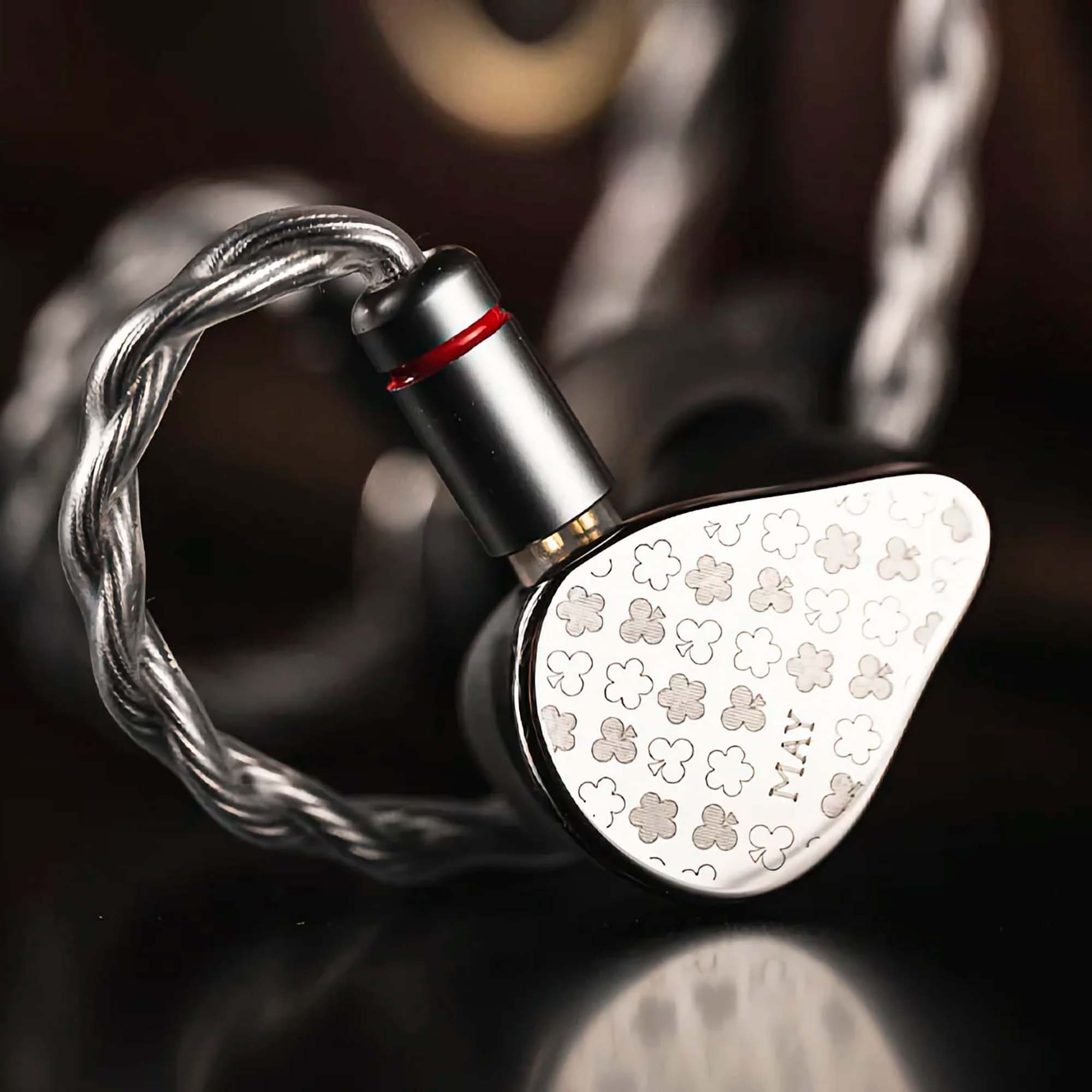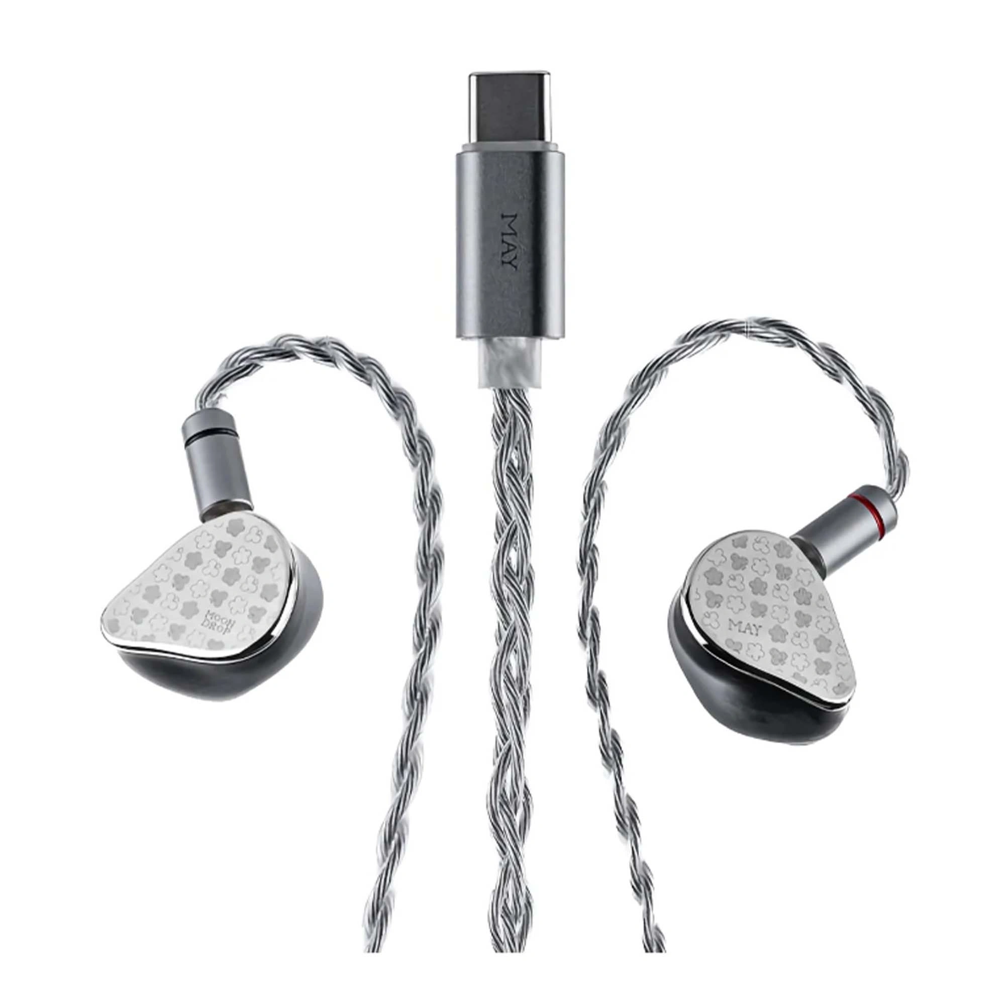 The Moondrop MAY DSP combines advanced audio technologies in a compact in-ear monitor form factor. The model features a hybrid driver configuration, including a 10mm dynamic driver with a sapphire-coated diaphragm and a 6mm ring planar magnetic driver. The dynamic driver handles low and mid frequencies, while the planar driver is responsible for the high frequency range above 8000 Hz.