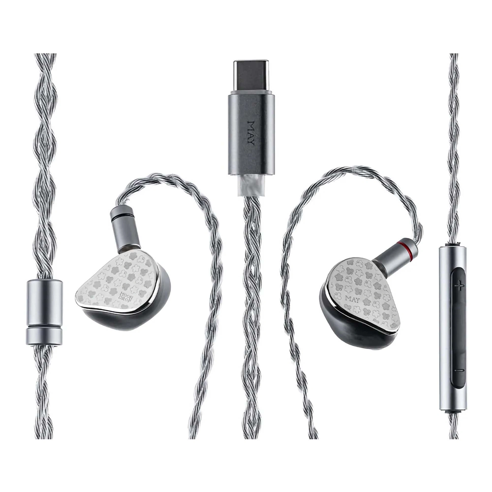 The MAY DSP come with a detachable cable with a standard 0.78mm two-pin connector and a USB Type-C connector. The cable integrates a DAC/amplifier, a three-button multimedia control, and a high-quality microphone.