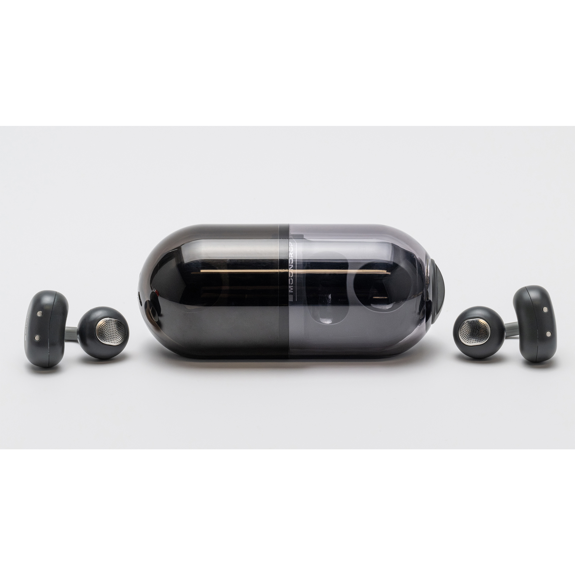 Pill are completely wire-free open-type TWS earphones with a unique design focusing on comfort, sound quality, and modern functionality. The model features a clip design that attaches to the ear shell with a flexible C-shaped memory silicone bridge reinforced with titanium. Thanks to this design, Pill sits comfortably even during long wear without blocking the ear canal, allowing you to stay connected with the surrounding world.