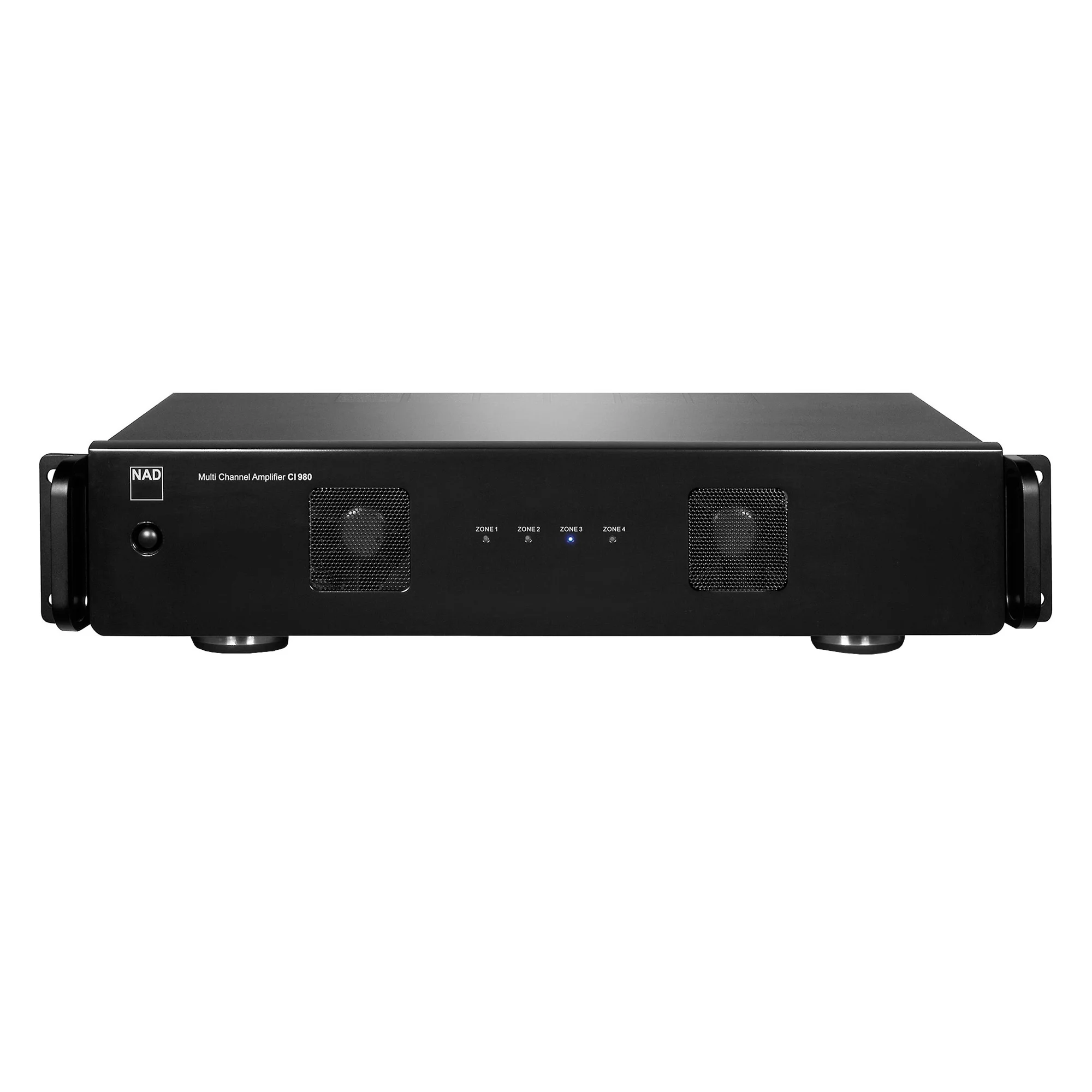 The CI 980 has 8 channels of clean, low distortion power set up in a 4 stereo zone configuration. Boasting 50 watts per channel, the CI 980 is designed to drive low impedance speakers and long wire runs. By utilizing the latest high efficiency switching amplifier technology, the CI 980 is an all-new design built to be small, light, and very energy efficient, with superb musical sound quality for which NAD is known.