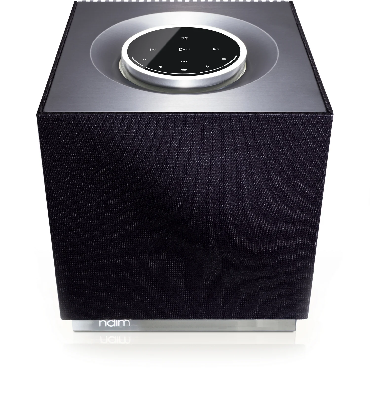 Mu-so Qb 2nd Generation The Naim Mu-so QB 2nd Generation model is a versatile wireless audio system with streaming capabilities, housed in an eye-catching compact cube casing, continuing the innovative line of its predecessor Mu-so. The top panel of the cabinet features an illuminated disc with touch controls for all functions, surrounded by a volume control ring. The transparent acrylic base has adjustable brightness illumination.