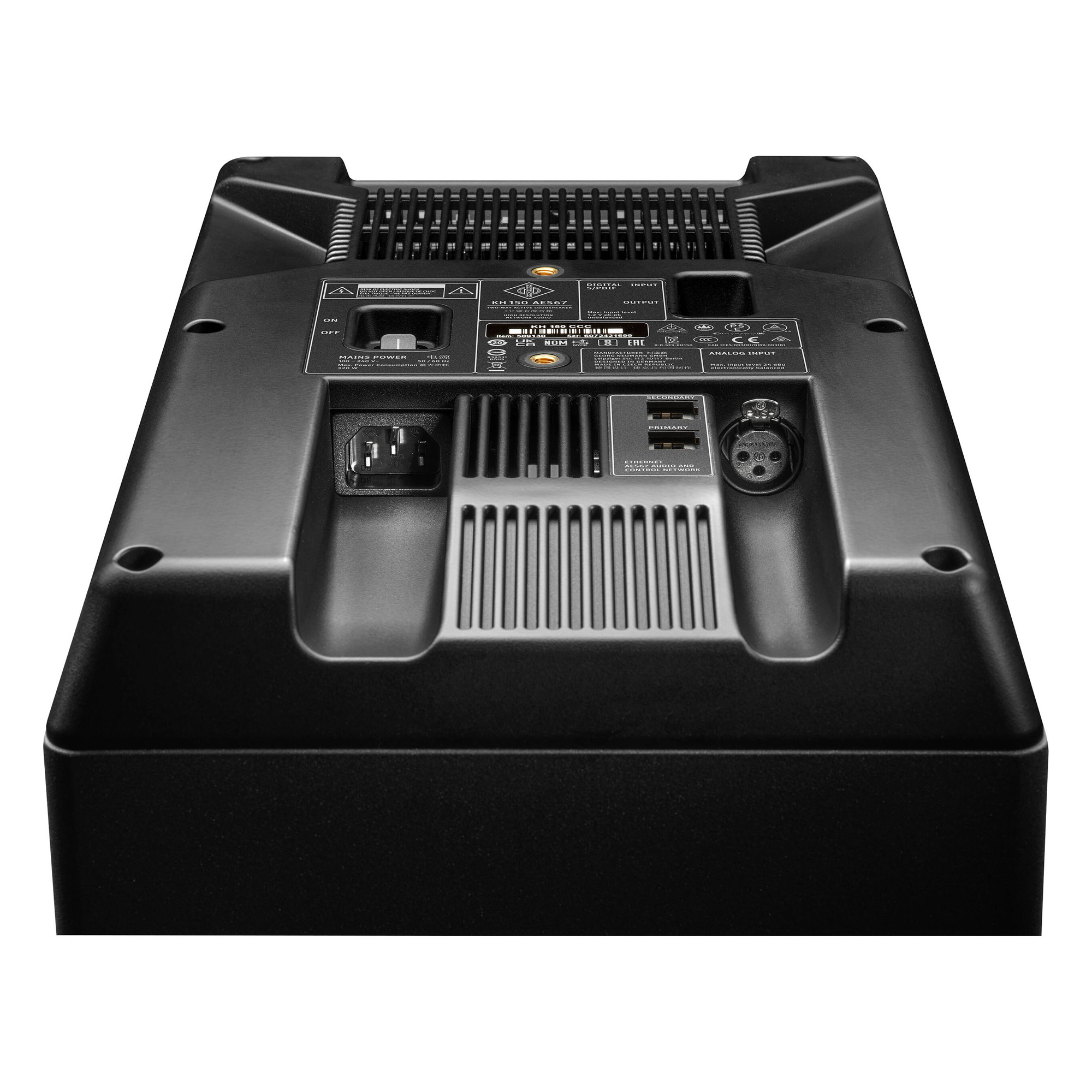 Additionally, the KH 150 AES67 model variant offers built-in backup AES67 audio network ports that fully comply with broadcasting standards such as ST 2110, ST 2022-7 redundancy, and RAVENNA. At the same time, the KH 150 AES67 is compatible with AES67 network streams generated by DANTE.