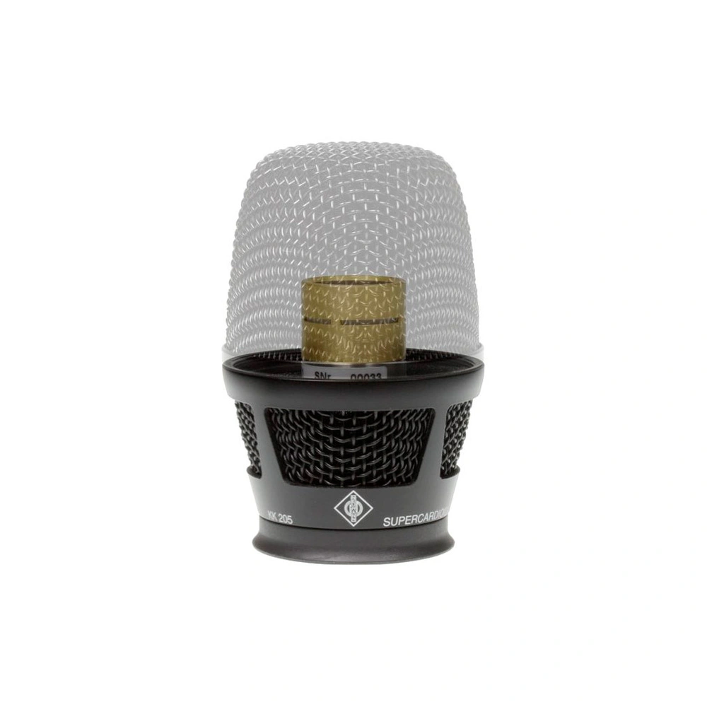 The Wireless KK 205 is a top-notch microphone capsule designed specifically for use with Sennheiser KM 2000/6000/9000 handheld transmitters, as well as the EW G4 300/500. This advanced condenser capsule brings together the authentic sound of Neumann with the convenience of wireless technology, making it the perfect choice for robust stage performances. It excels in providing exceptional wind noise protection, handles high sound pressure levels with ease, and boasts excellent feedback resistance.