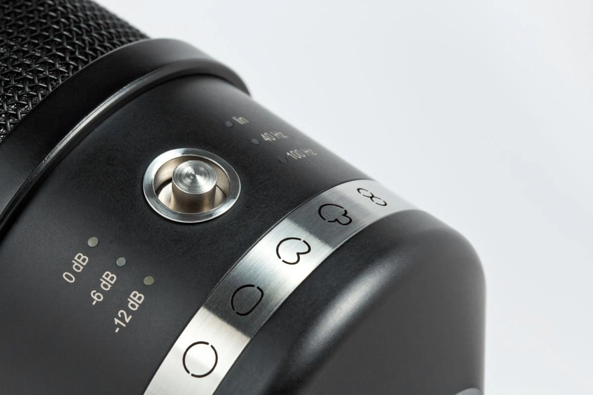 The latest sound sensor, specifically designed for this microphone, is impressive for its outstanding pulse accuracy. The sequence of five polar patterns - omnidirectional, cardioid, bidirectional, supercardioid, and hypercardioid - is unusual for a large-diaphragm microphone capsule.