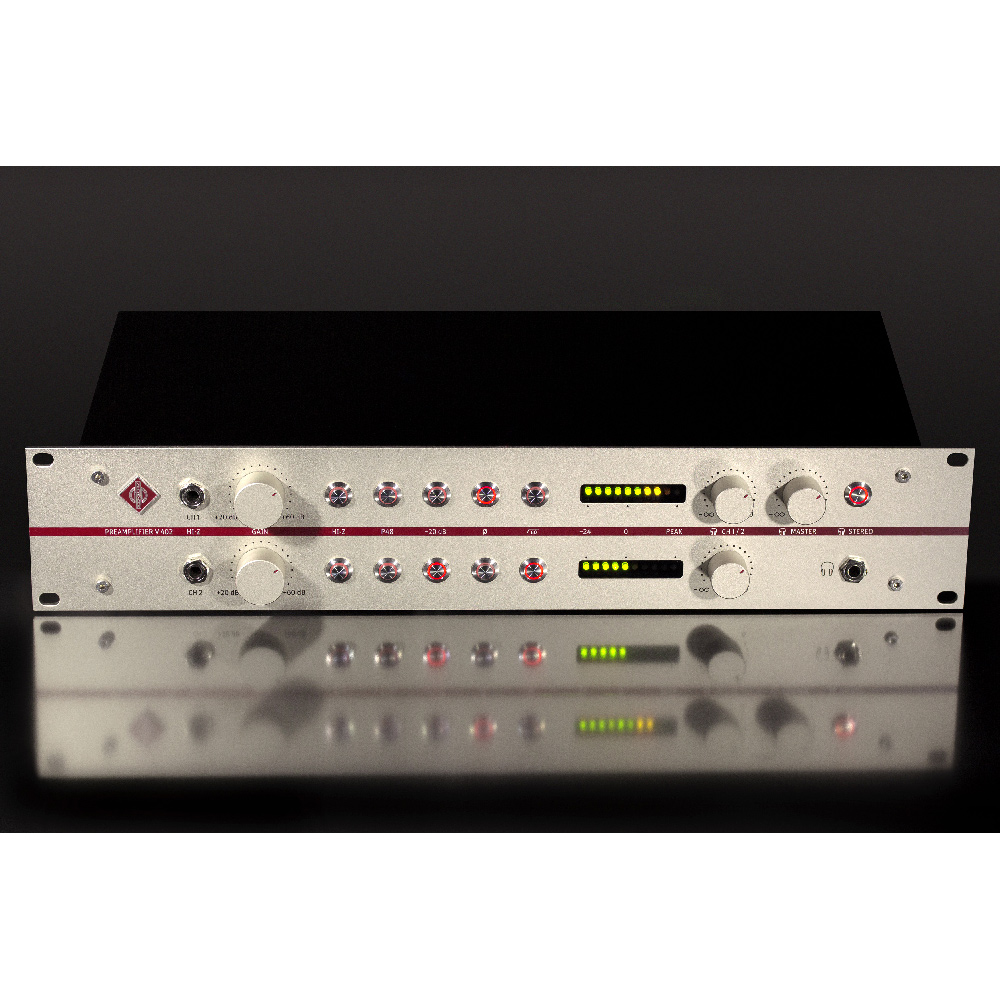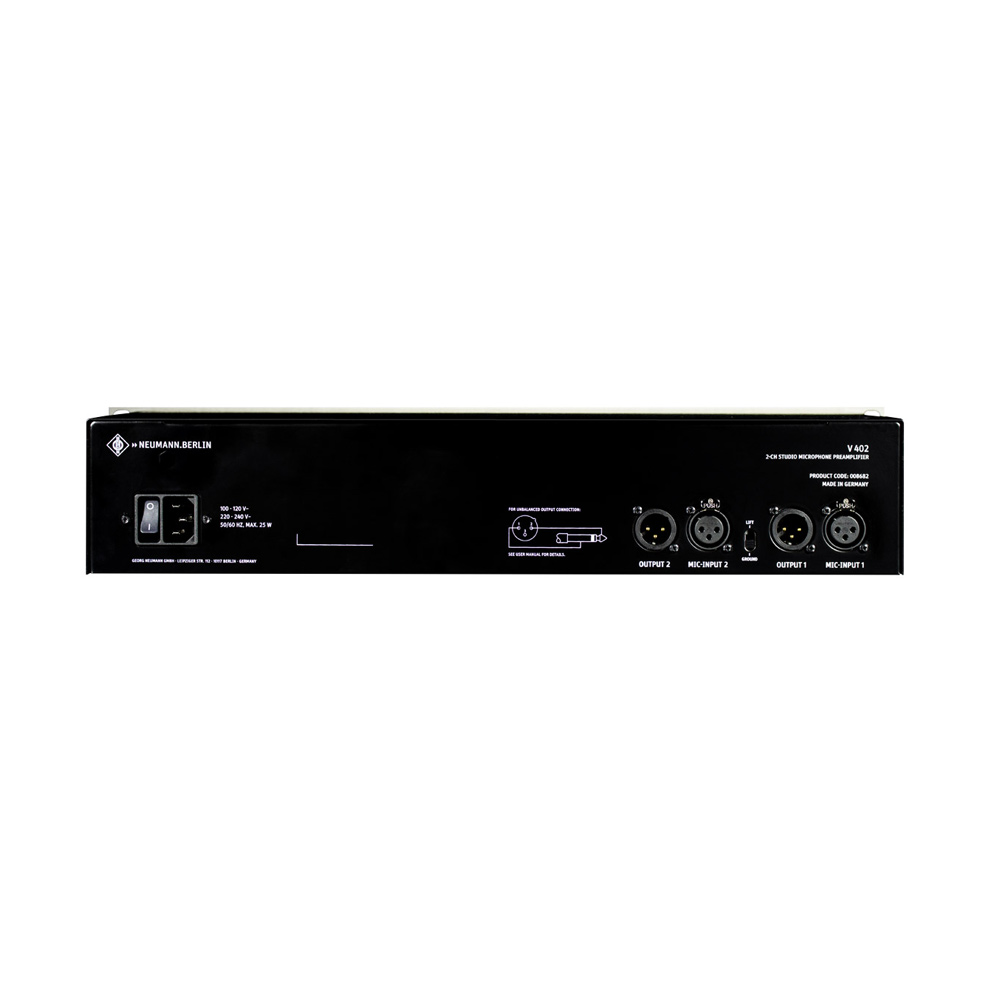 Neumann has a long history of developing high-quality modular preamplifiers for mixing consoles, including the legendary V 476 B from the 1980s. The V 402 is the first stand-alone microphone preamplifier that incorporates Neumann's extensive experience and the company's most advanced software and hardware solutions in sound processing.