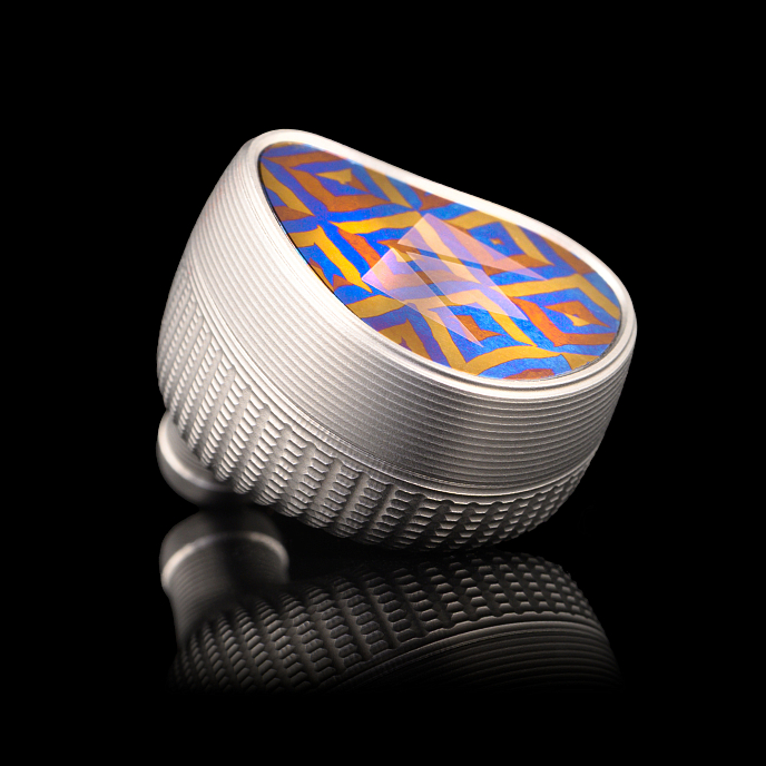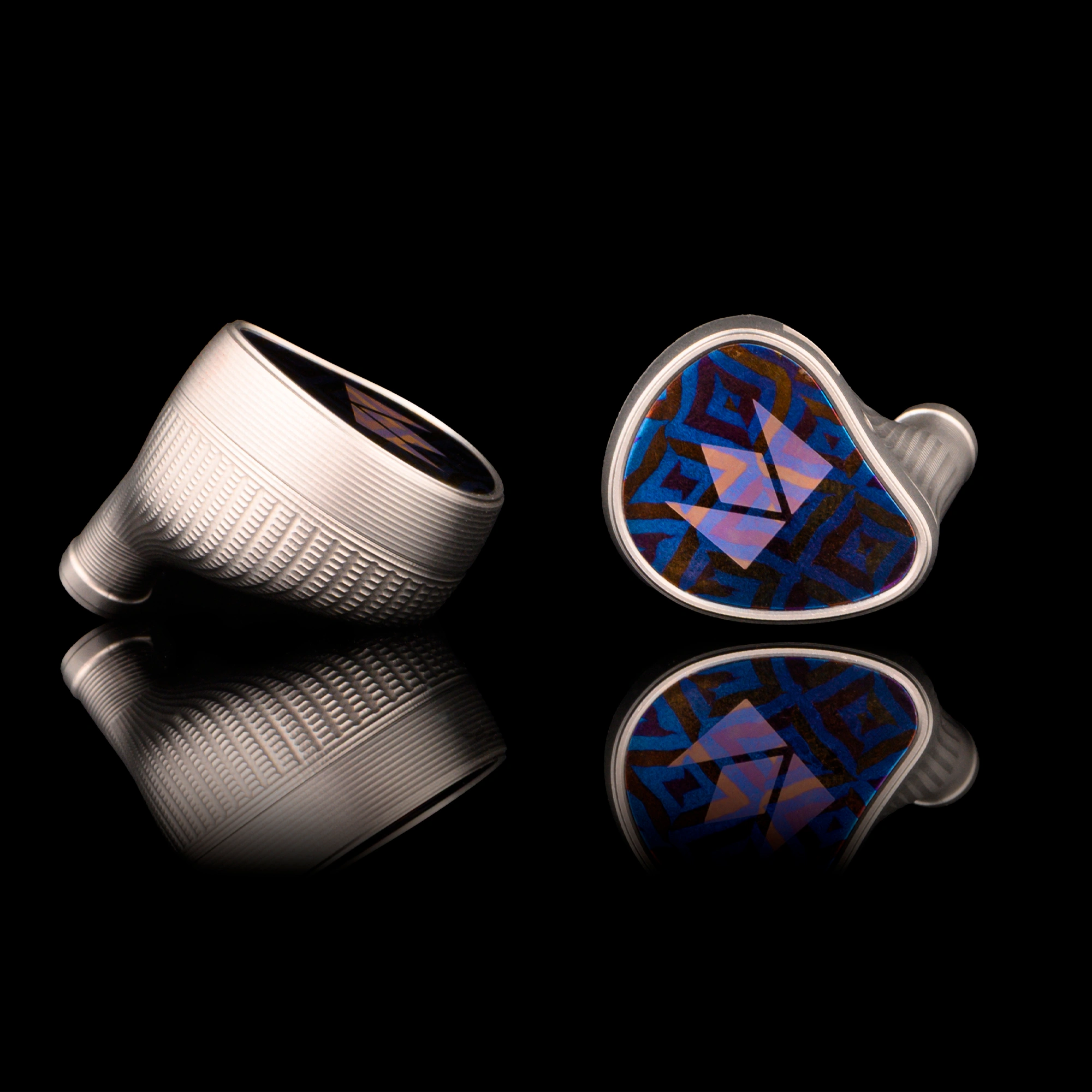 Kronos features a striking titanium shell with a refined matte silver finish. The faceplate is crafted from Damascus-style titanium - a design first introduced in the Chronicle—adding visual contrast and a sense of continuity across Noble’s flagship evolution. This material combination not only highlights luxury and craftsmanship but also improves acoustic performance: titanium’s resonance control delivers a cleaner, more open sound.