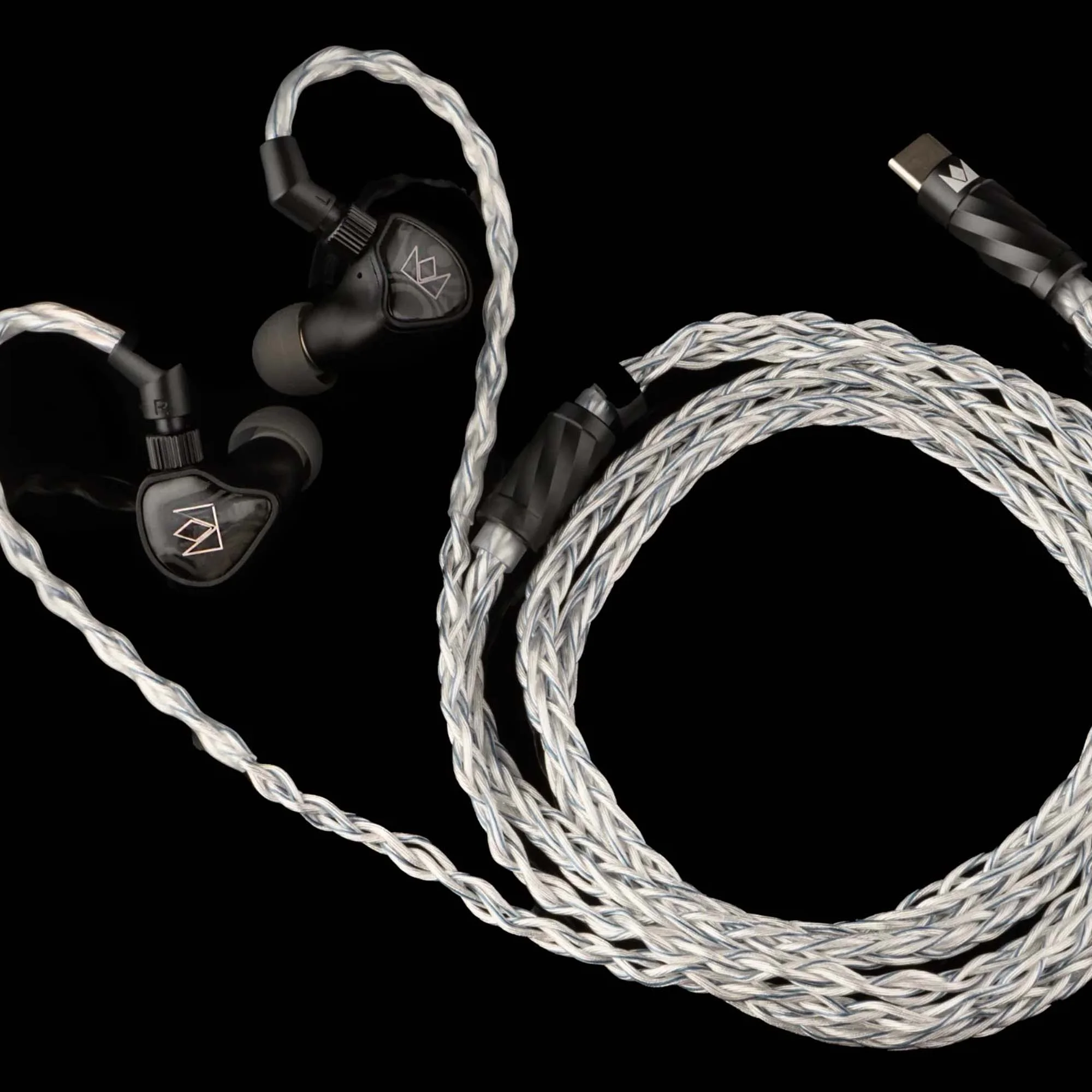 The wired in-ear headphones XM1 connect to sources via USB-C, meaning they have a built-in DAC and amplifier. The cable is detachable with proprietary 4-pin connectors. The housings are made of aluminum, and the sound tubes are made of stainless steel.