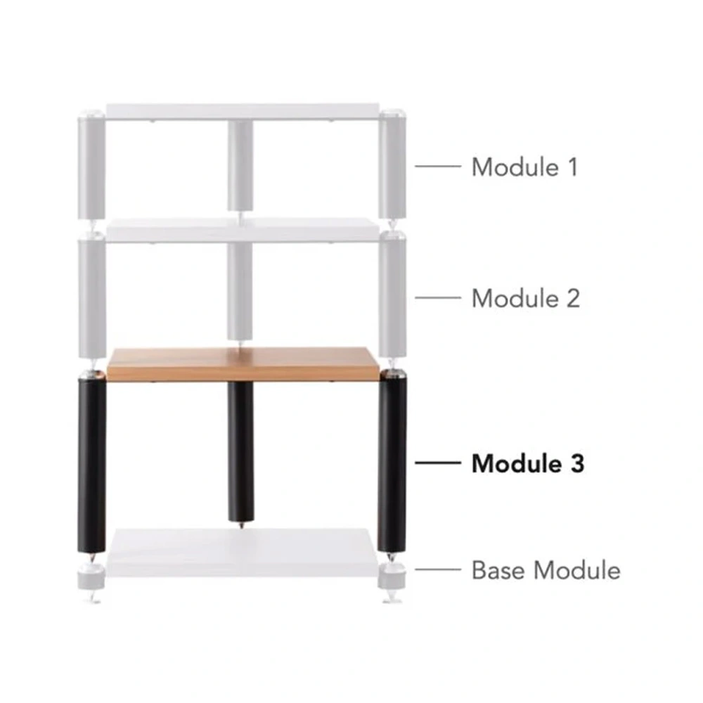 The Copenhagen Module 3 unit with a useful height of 363 mm is perfect for installing amplifiers or other compact Hi-Fi equipment. Its premium design combines a sturdy metal construction for extra stability, and an oak tabletop for a natural and elegant look. It comes with spikes and counter spikes to limit vibration and ensure optimal listening experience.