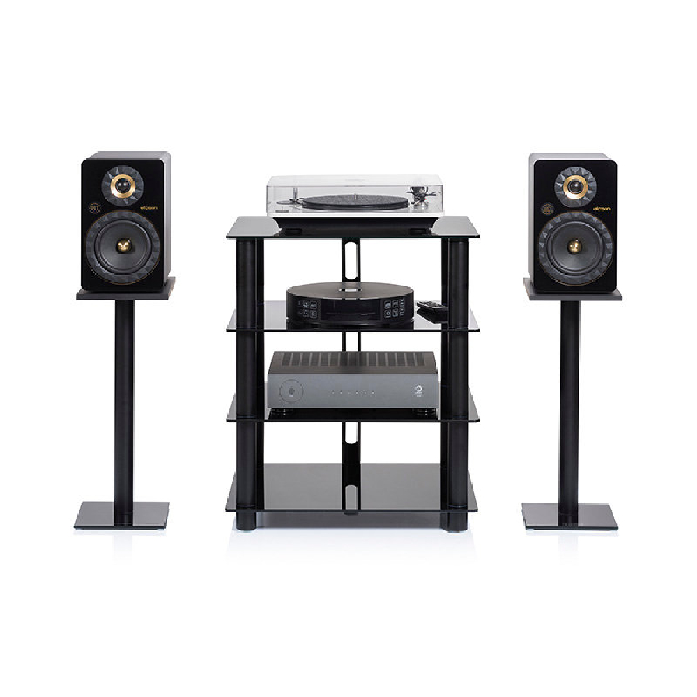 Epur 4 will be able to receive all the elements of your Hi-Fi system. For example, on the top shelf, a vinyl turntable. Eventually, it can also accommodate your TV and home theater system. The ball bearing feet allow the furniture to be moved with maximum ease.