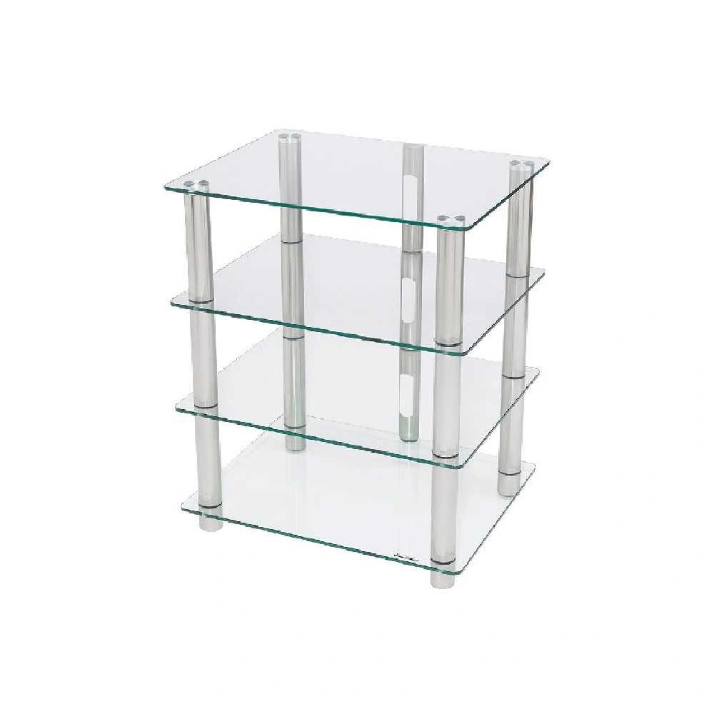 - Shelves: Clear or black tempered glass